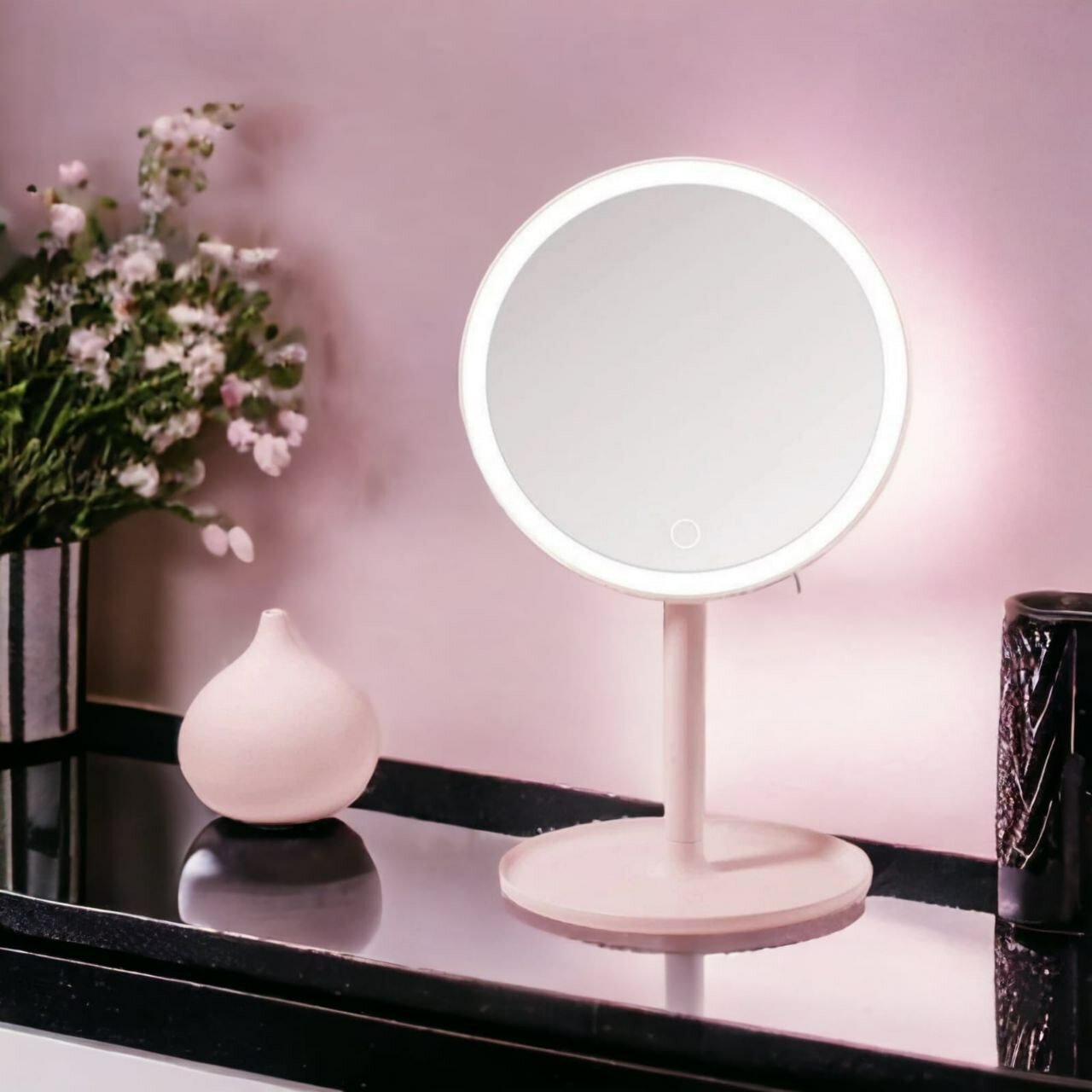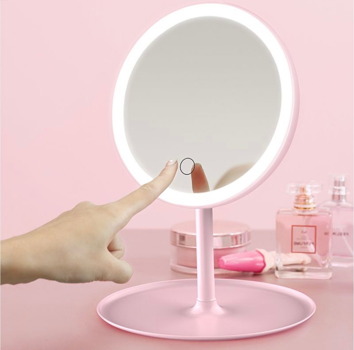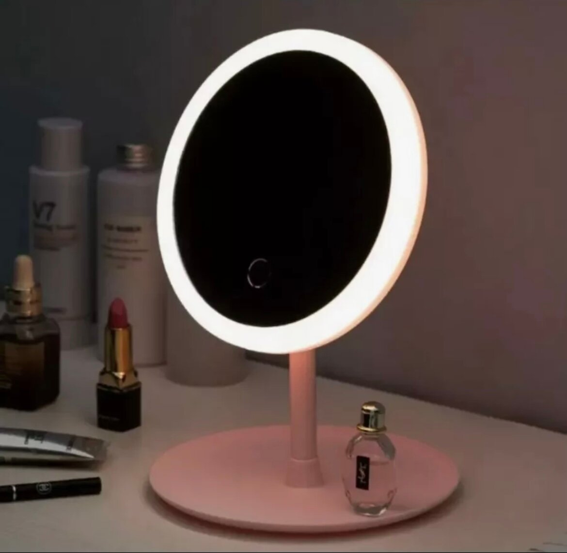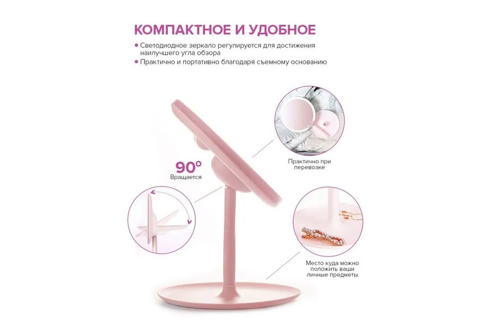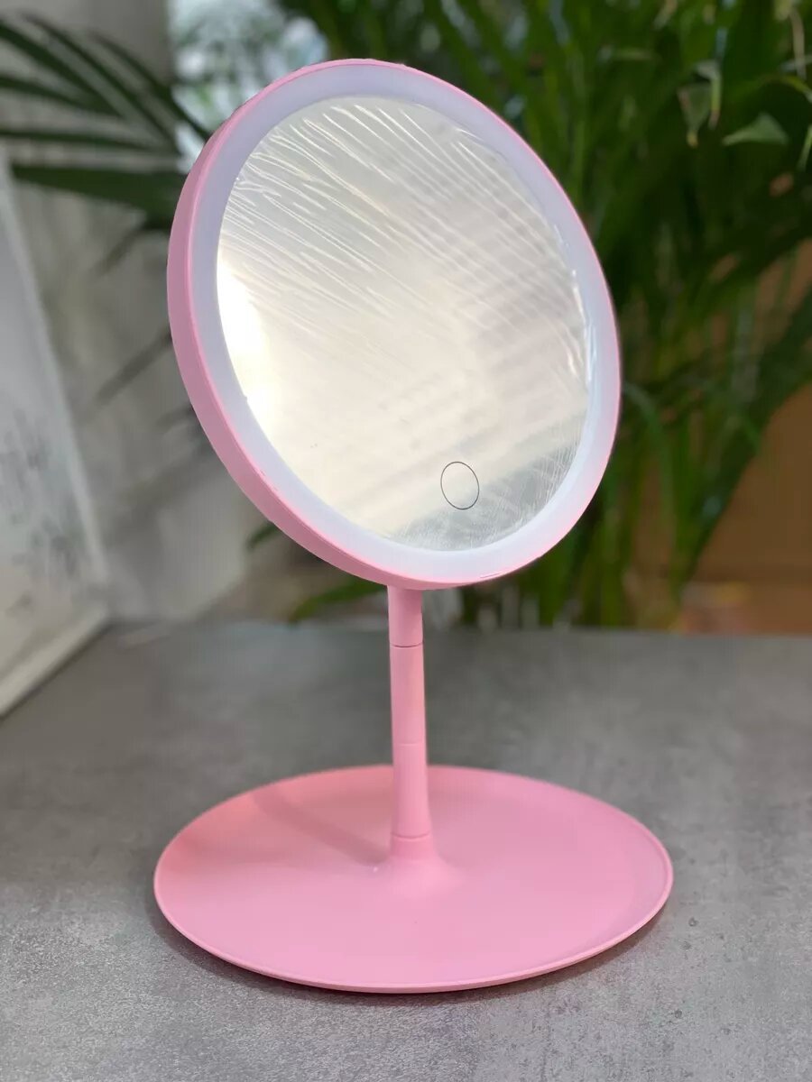 Настольное зеркало с подсветкой розовое
