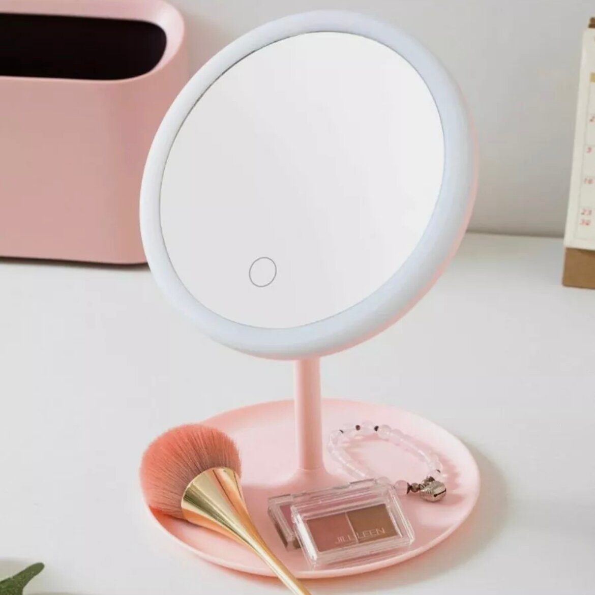 Настольное зеркало для макияжа с подсветкой, розовое