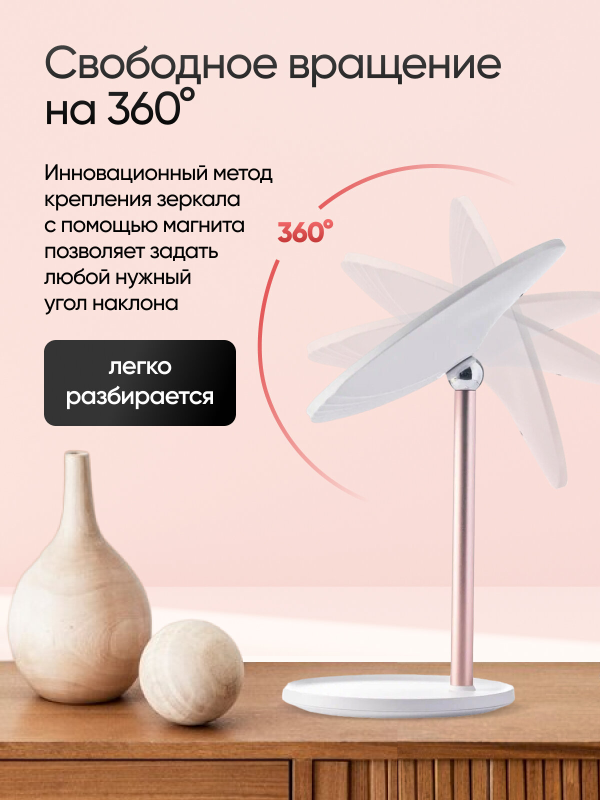 | Комплектация | косметическое зеркало, увеличительное зеркало 5x, подставка, кабель зарядки, документация |
