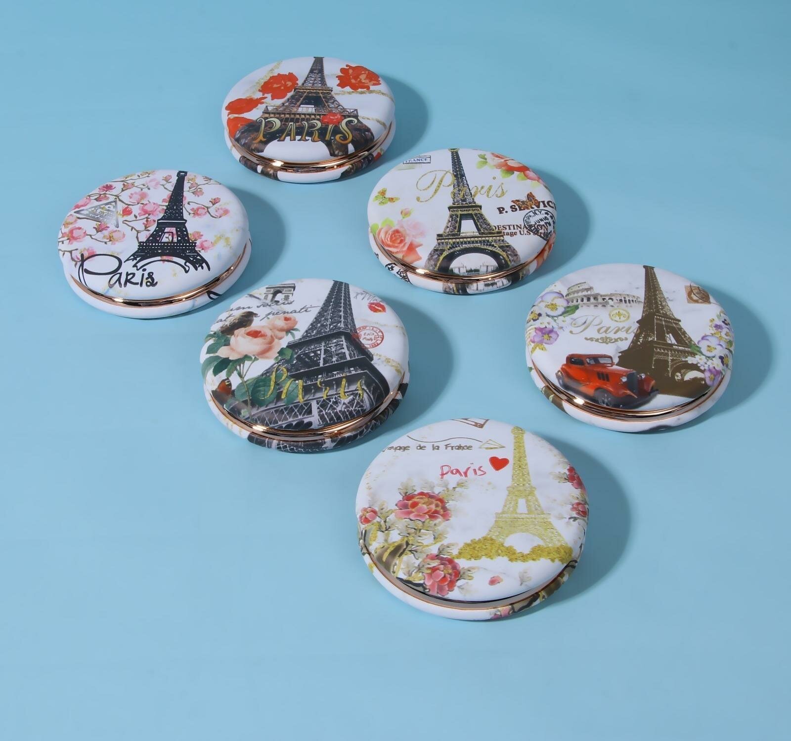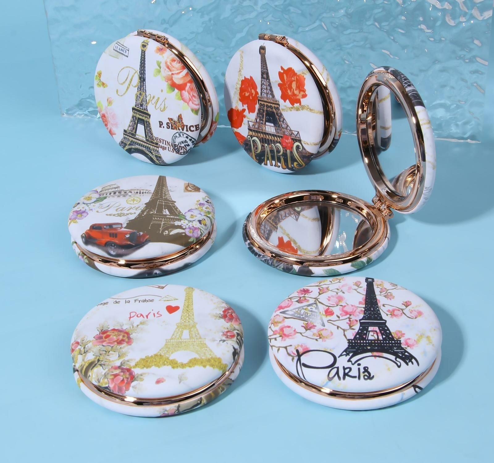 Купить Зеркало складное «Париж», d = 7,5 см, с увеличением, искусственная кожа, рисунок микс
