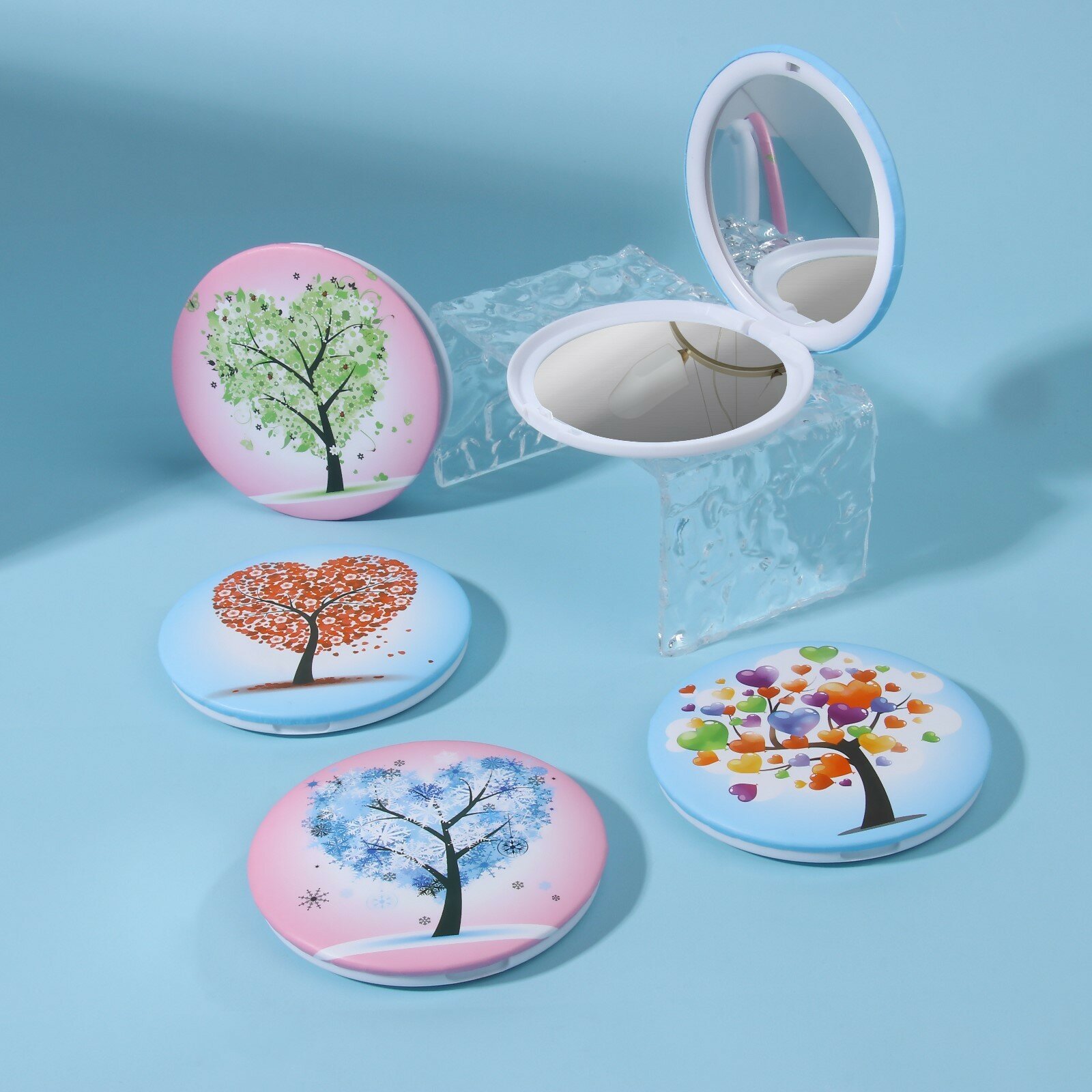 Зеркало складное «Деревья», d = 7,5 см, с увеличением, рисунок микс, 3721895