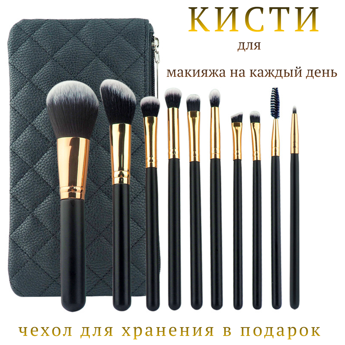 Купить Профессиональные кисти для макияжа Makkisti, 10 шт, черные, с футляром в комплекте