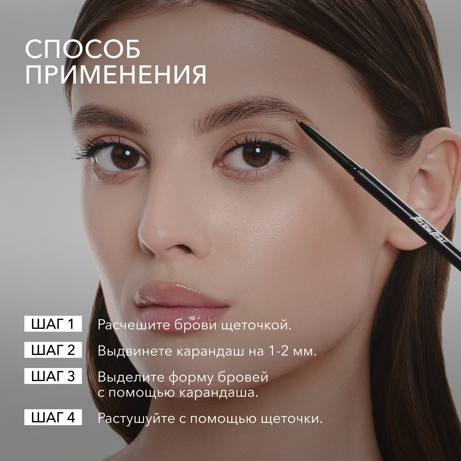| Способ применения | Расчешите брови щеточкой. Выдвинете карандаш на 1-2 мм. Выделите форму бровей с помощью карандаша. Растушуйте с помощью щеточки. Для большей стойкости закрепите результат прозрачным гелем для бровей CLEAR EYEBROW GEL SHIK. |