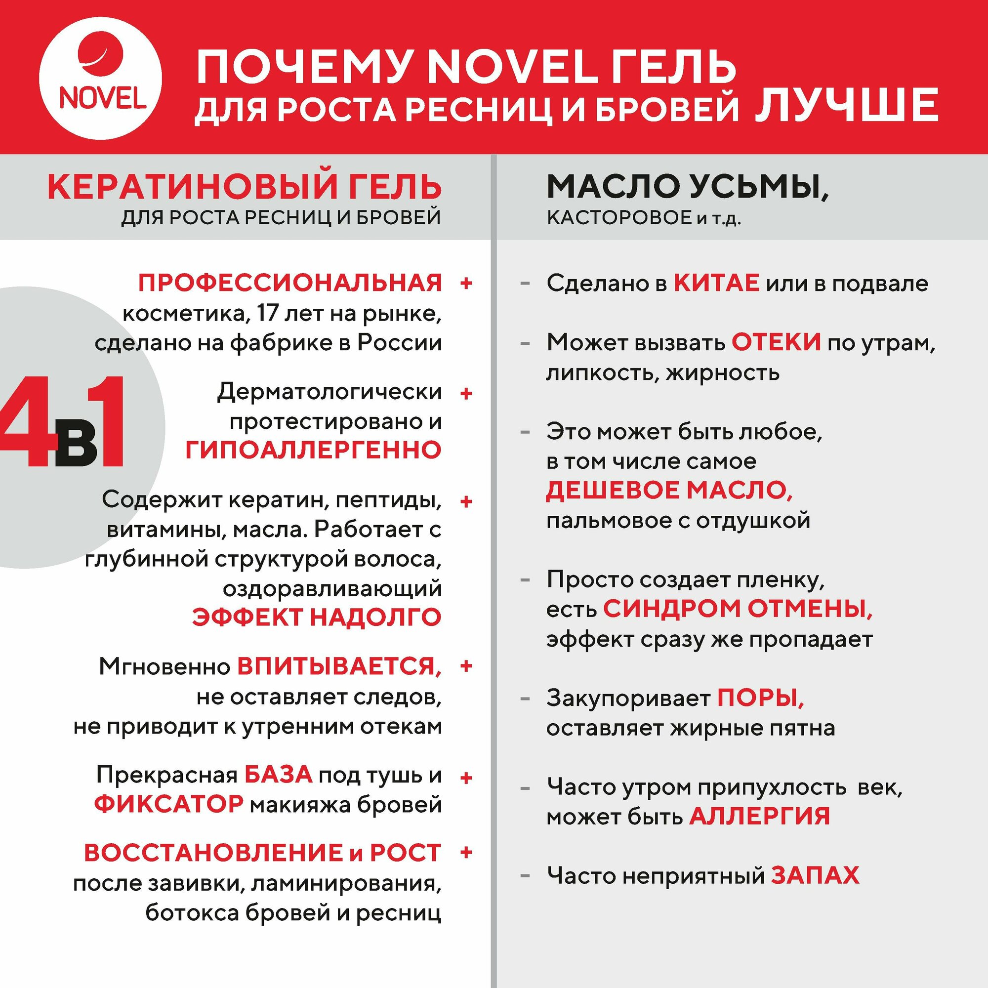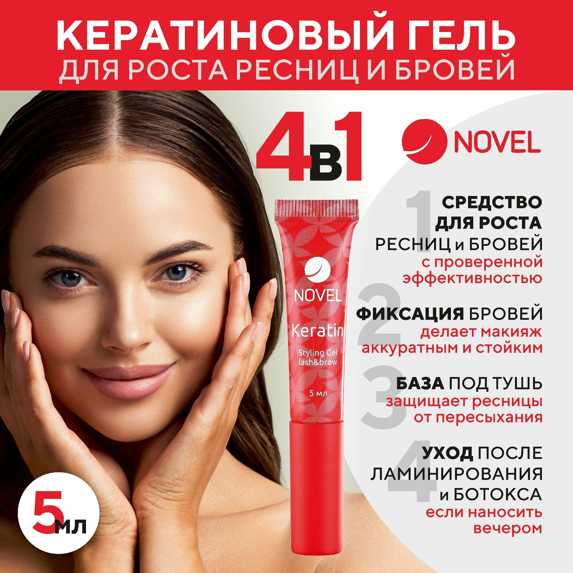 Гель для бровей и ресниц Novel восстанавливающий кератин для роста волос, бесцветный, 5 мл интересное: