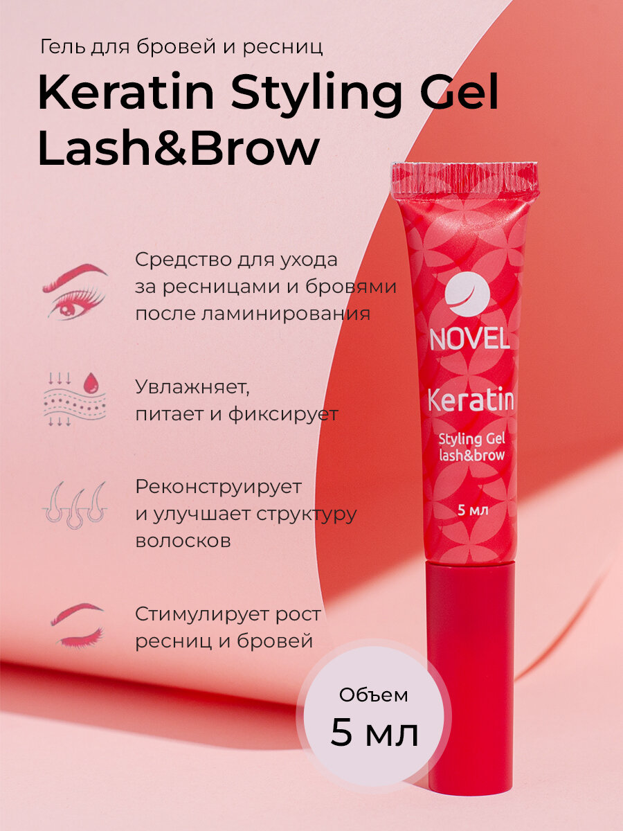 Купить Гель для бровей и ресниц Novel восстанавливающий кератин для роста волос, бесцветный, 5 мл
