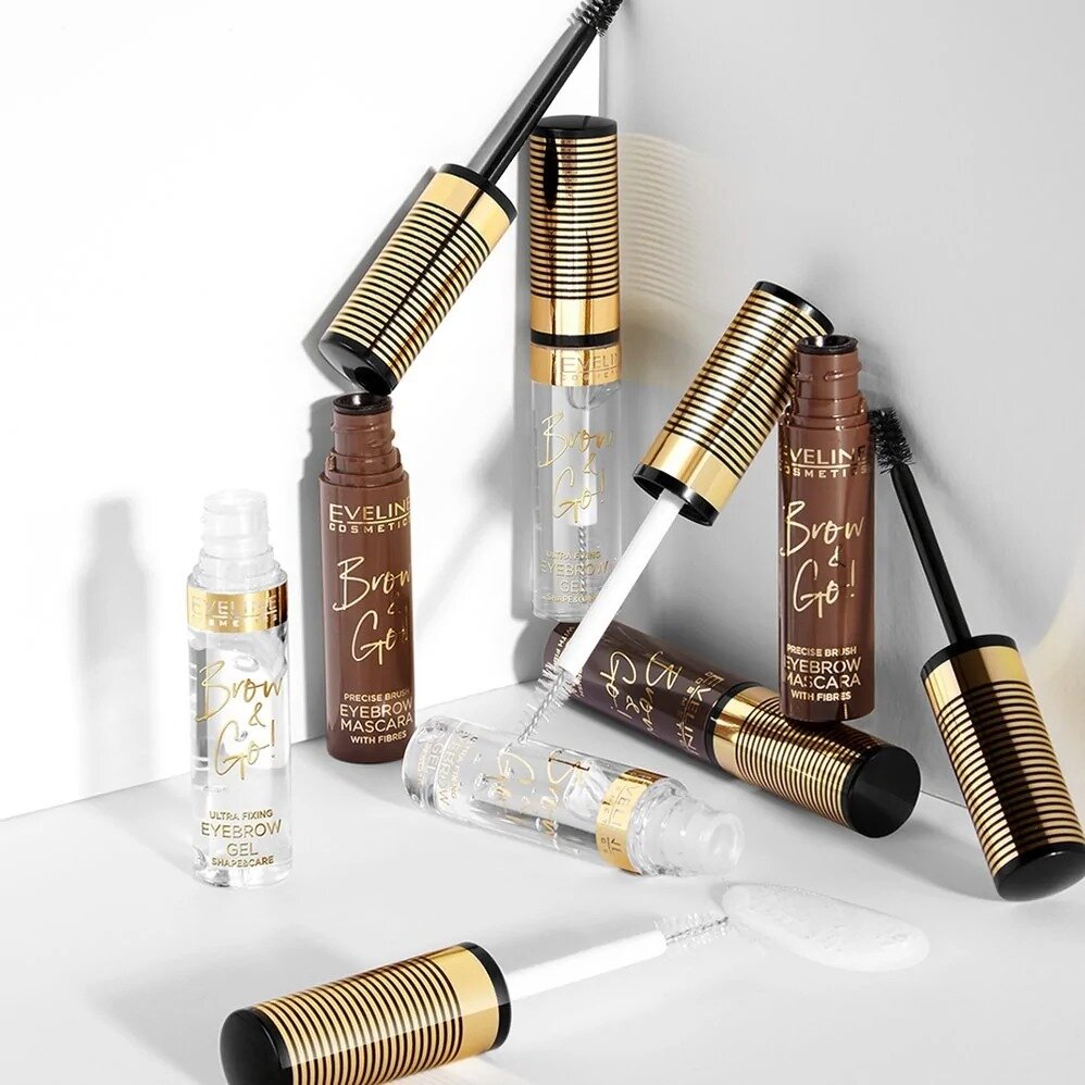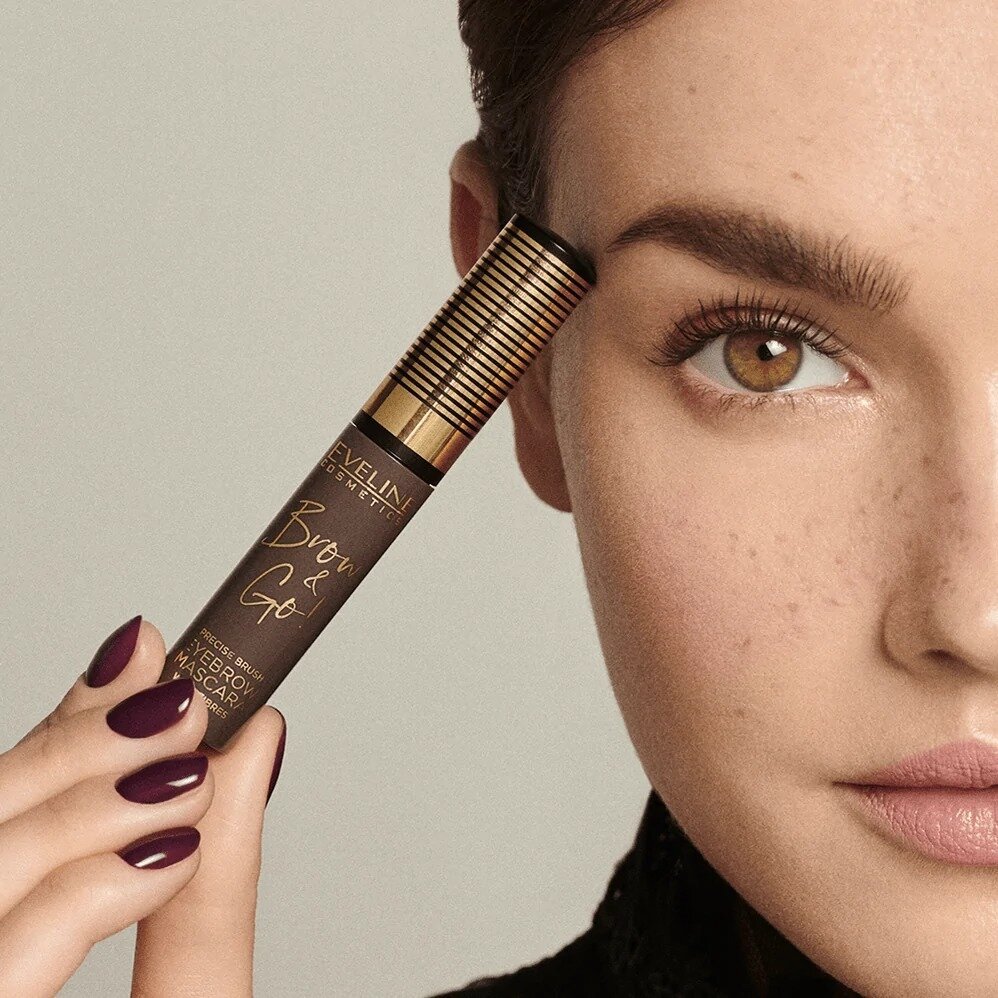 Eveline Brow Go 01 Тушь стойкая для бровей с микрофиброй, тон 01 medium brown, 6 мл