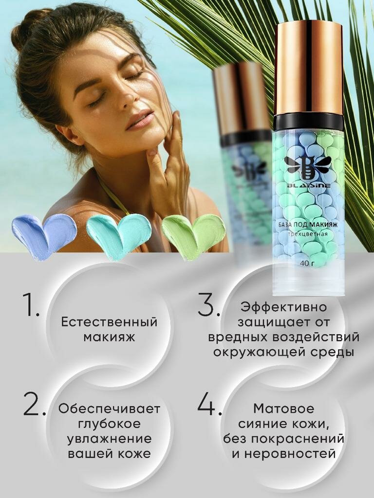Купить Выравнивающая матирующая база под макияж BLAISINE / Праймер для лица под макияж / Тональная основа под макияж трехцветная / Тональная основа для лица / Кушон