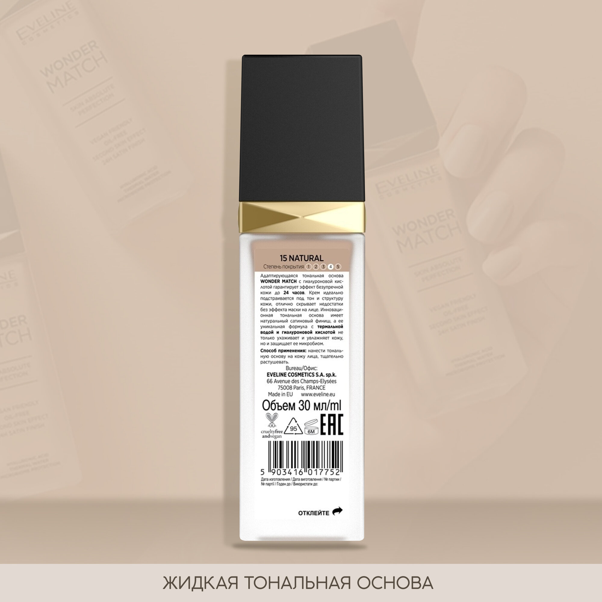 EVELINE WONDER MATCH Адаптирующаяся тональная основа - 15 Natural 30мл