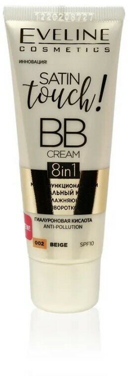 EVELINE SATIN TOUCH BB CREAM 8в1 Многофункциональный тональный крем 002 BEIGE с увлажняющей сывороткой