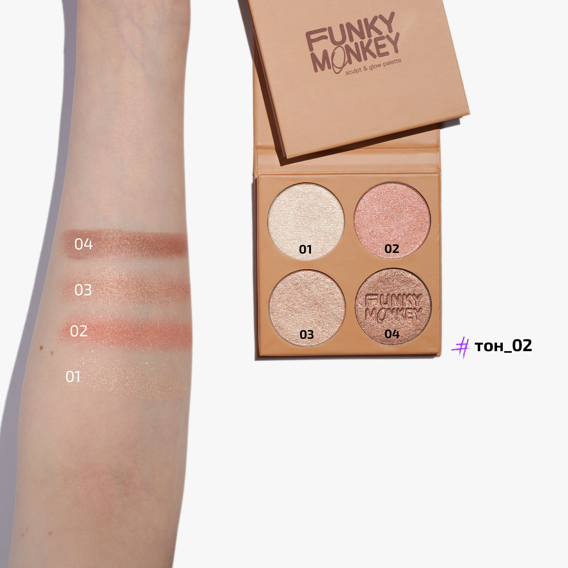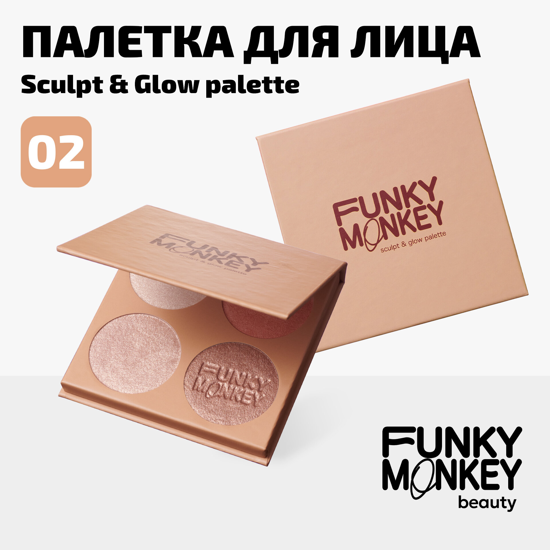 FUNKY MONKEY Палетка для скульптурирования Sculpt & glow palette, 8 г, 02