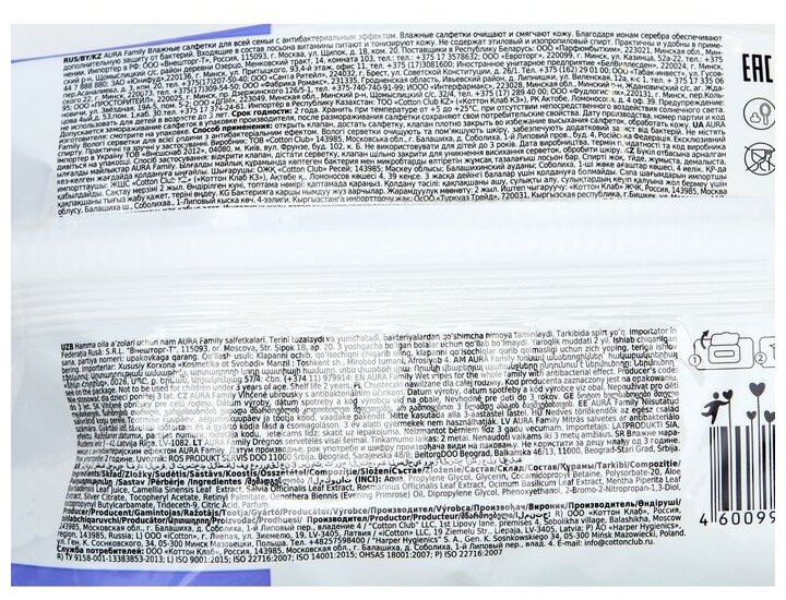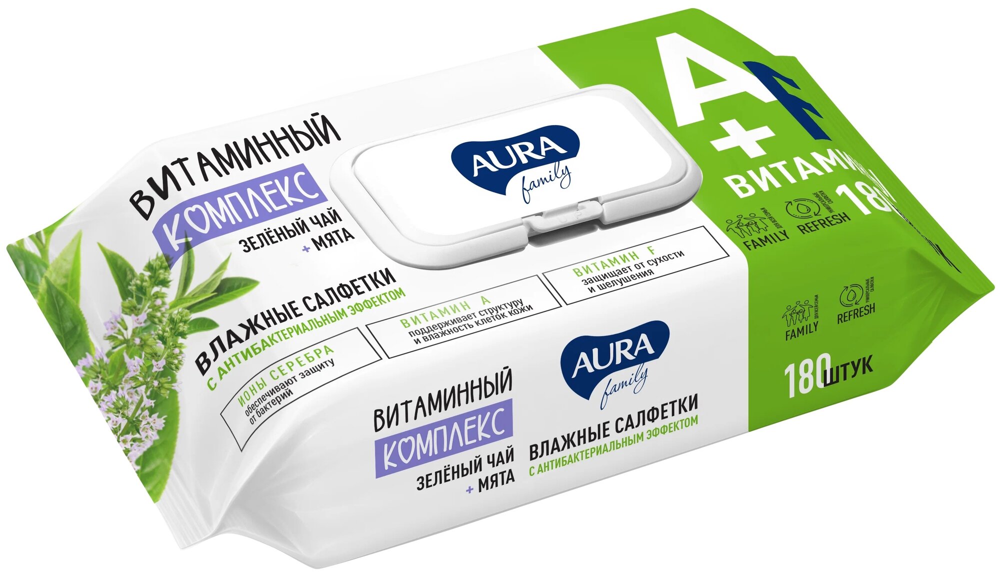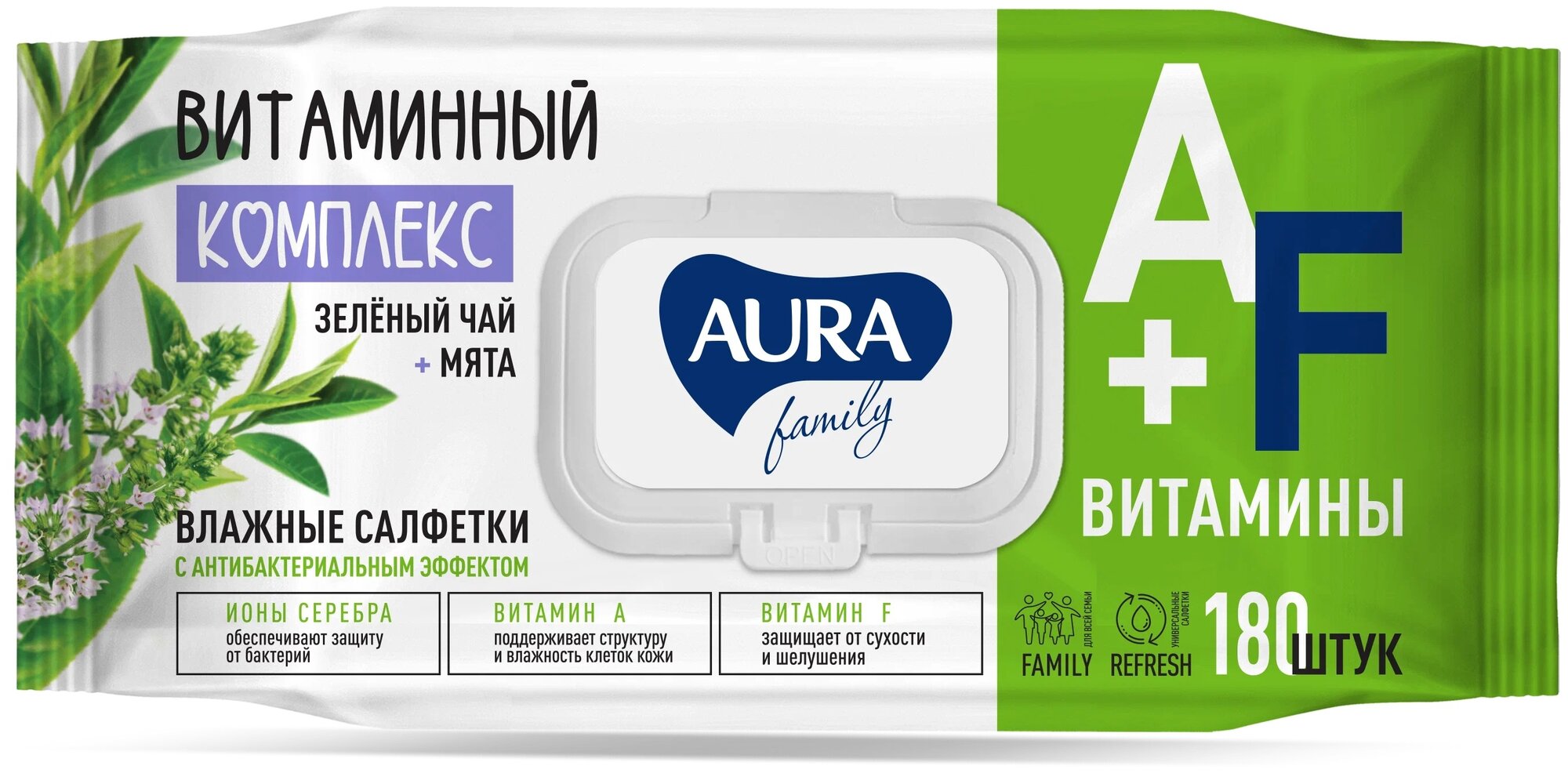 Aura Family Антибактериальные Влажные Салфетки Витаминный Комплекс, 180шт интересное: