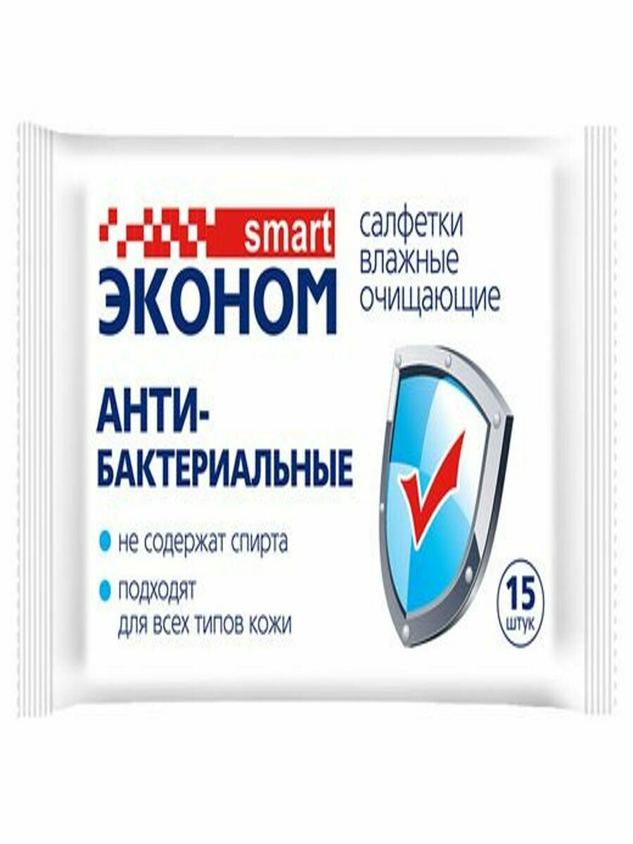Влажные салфетки Эконом Smart С Антибактериальным Эффектом 15 шт интересное: