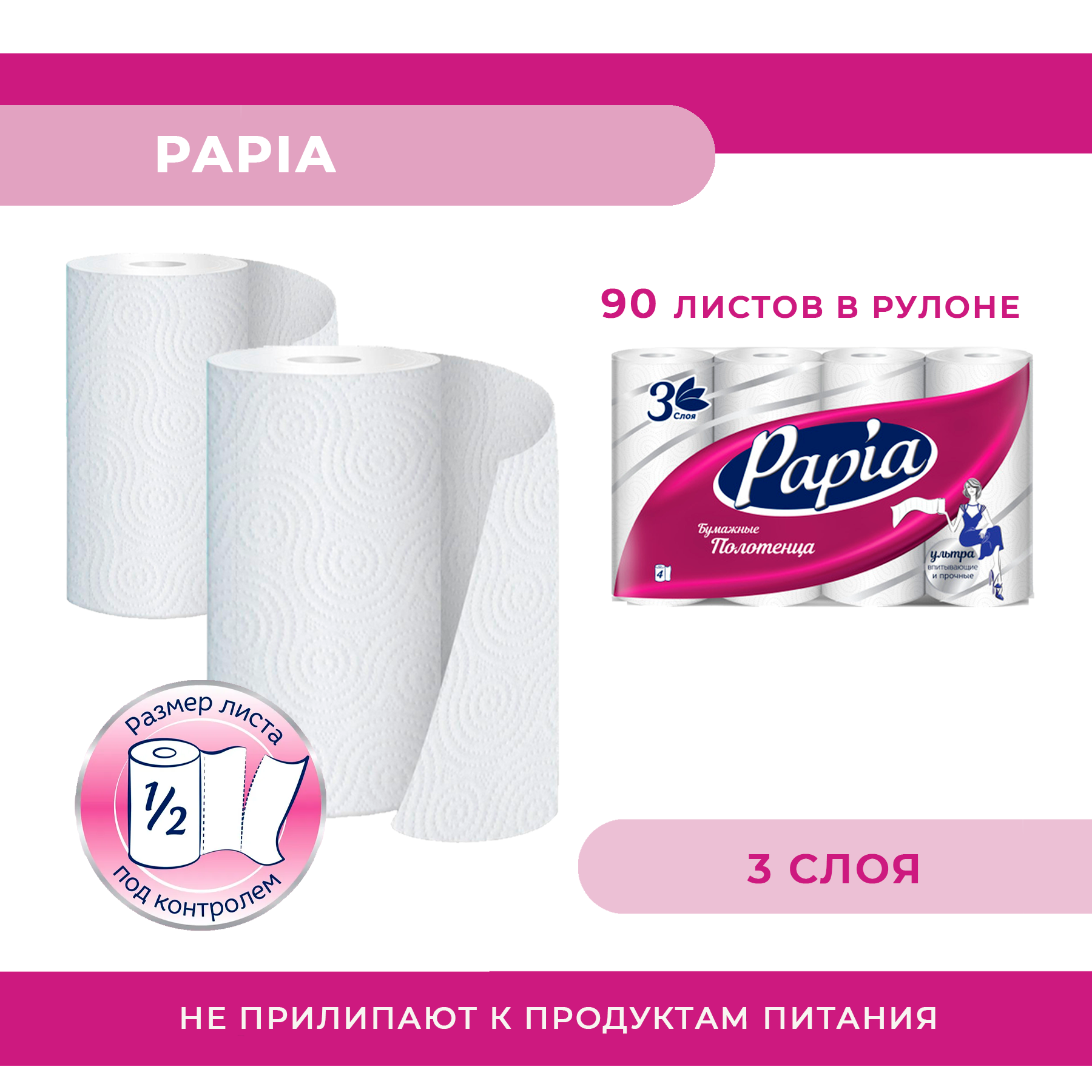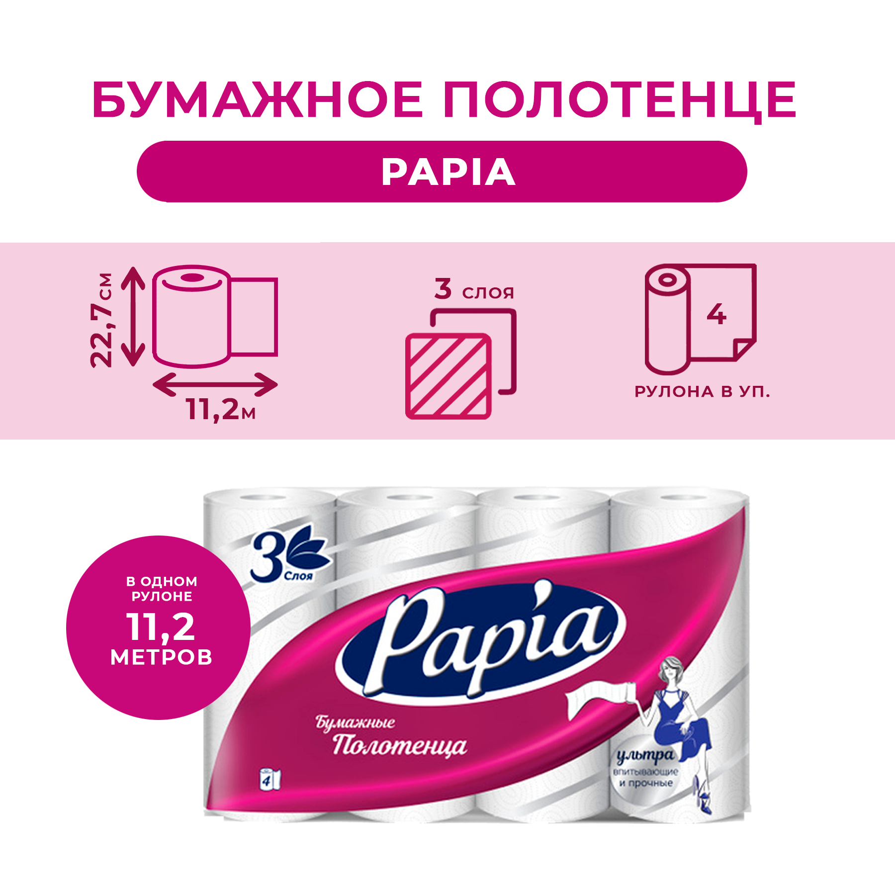 Купить Бумажные полотенца PAPIA 3 слоя 4 рулона