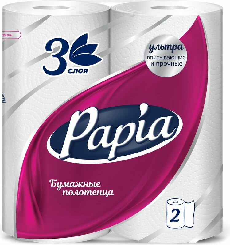 Papia Бумажные полотенца белые трёхслойные 85 листов, 2 рулона