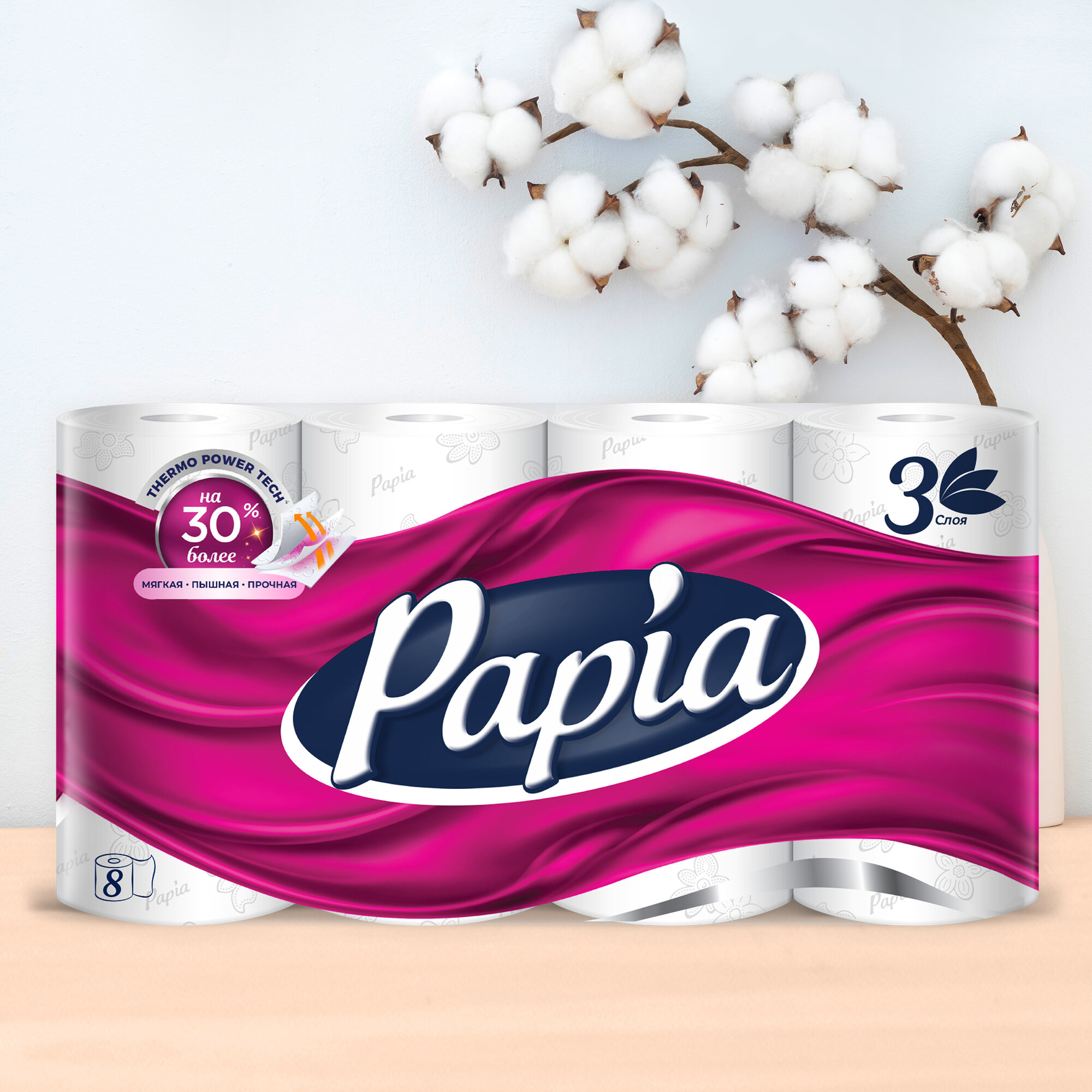 Бумага туалетная PAPIA 3-слоя белая, 8шт