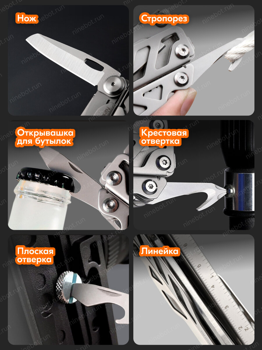 | Инструменты (функции) | велосипедный ключ / кусачки / нож / ножницы / отвертка / открывалка для бутылок / пассатижи / пила / плоскогубцы / стеклобой |