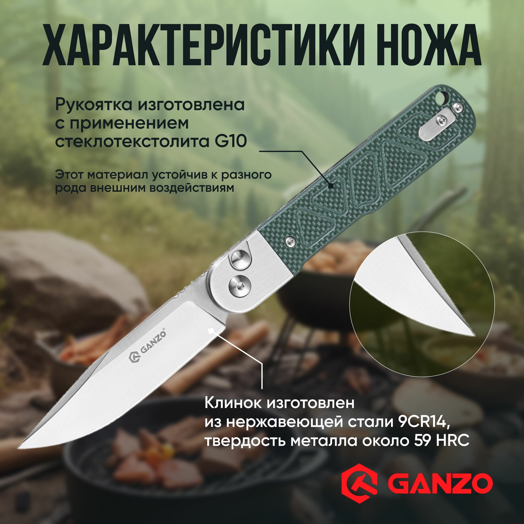 Нож складной туристический охотничий тактический, Ganzo G767-GB зеленый интересное: