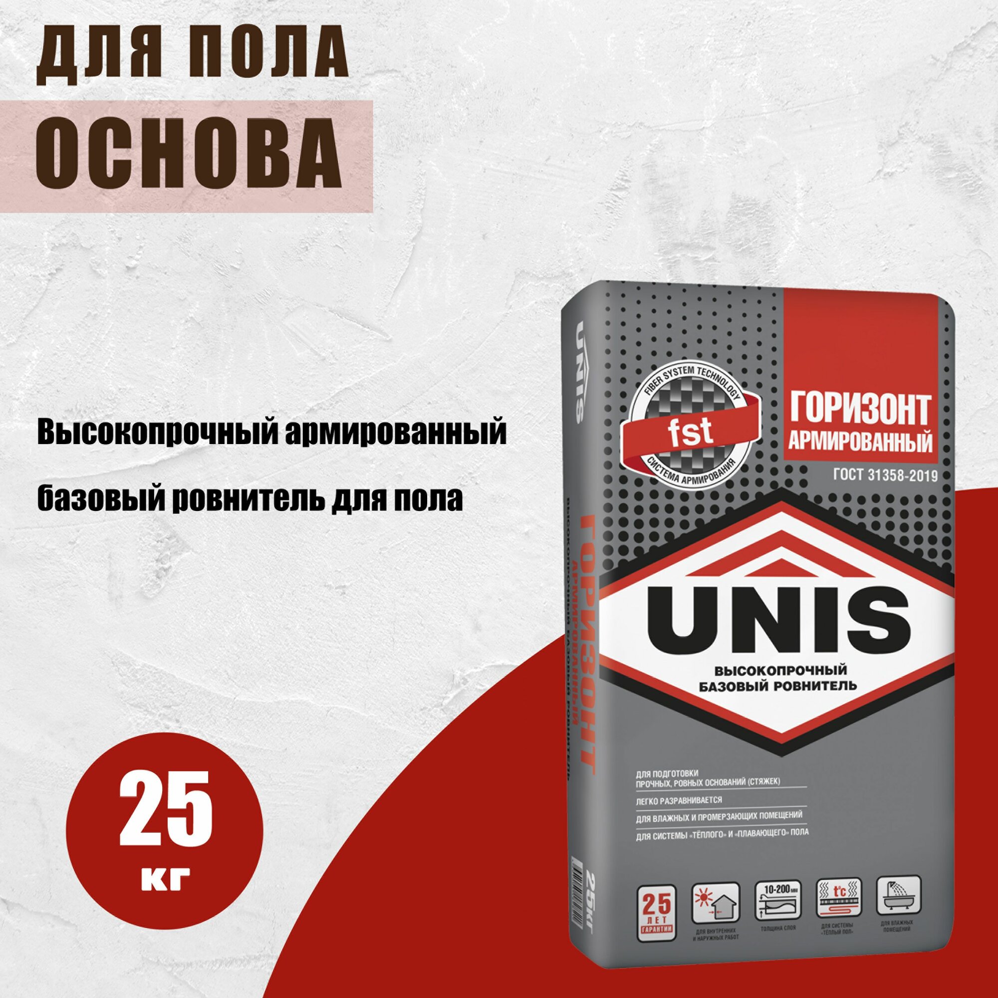 Юнис Горизонт Армированный стяжка пола (25кг) / UNIS Горизонт Армированный высокопрочный ровнитель для пола (25кг)