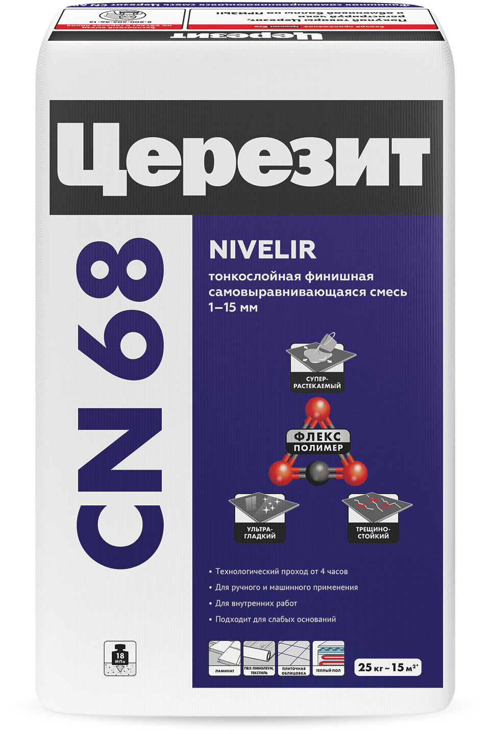 Церезит CN-68 финишный самовыравнивающий пол (25кг) / CERESIT CN68 тонкослойная самовыравнивающаяся смесь (25кг)