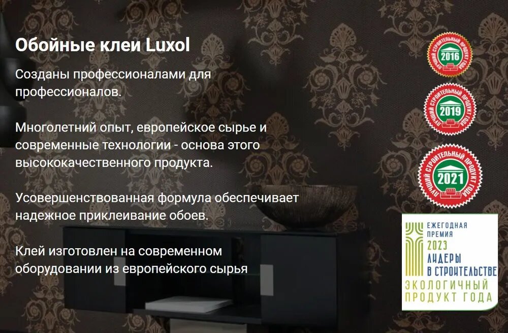 СохранитьКлей обойный «LUXOL универсал» (Standart) пакет 180г. интересное: