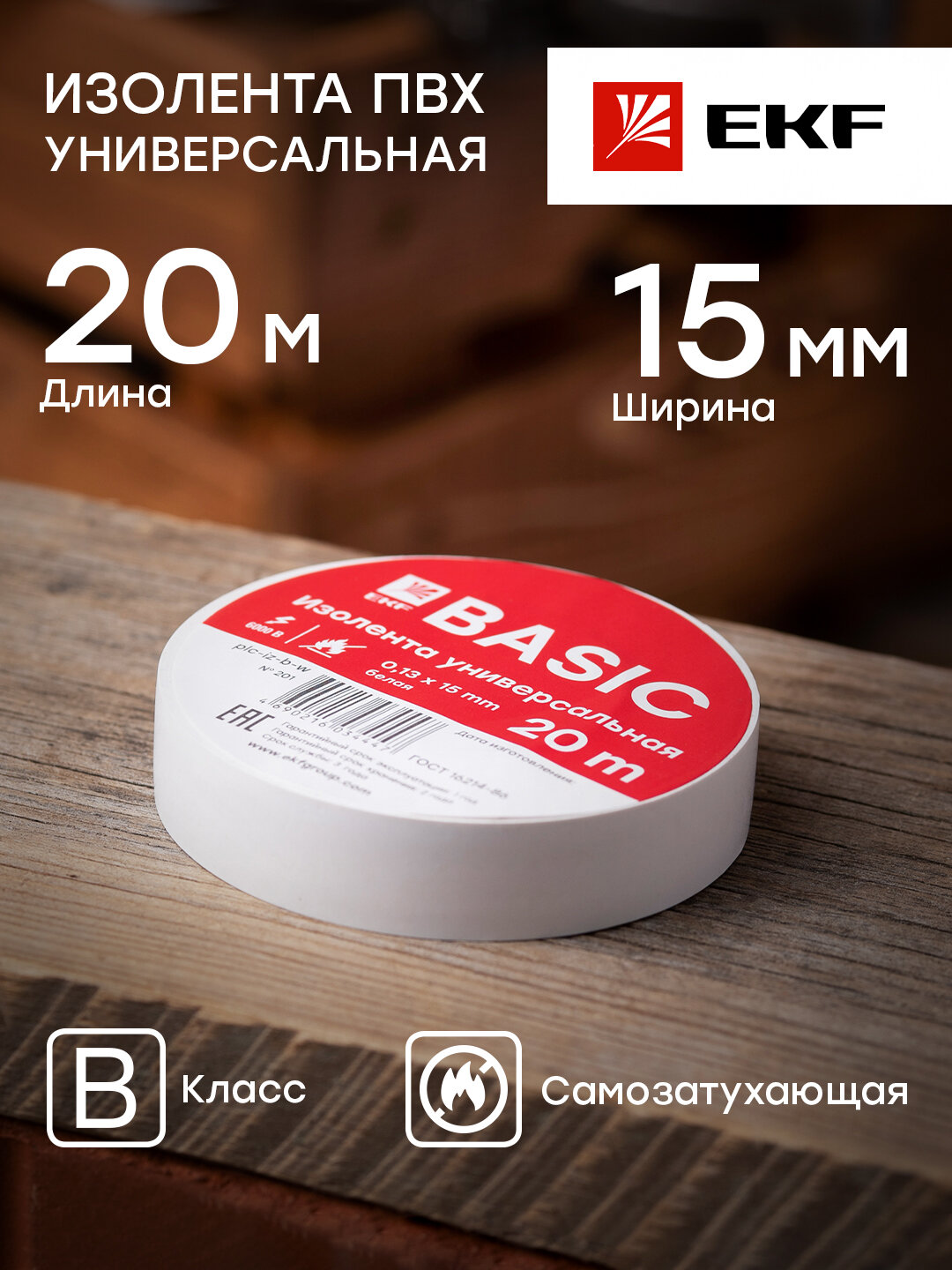 Изолента EKF Basic 15 мм 20 м ПВХ цвет белый