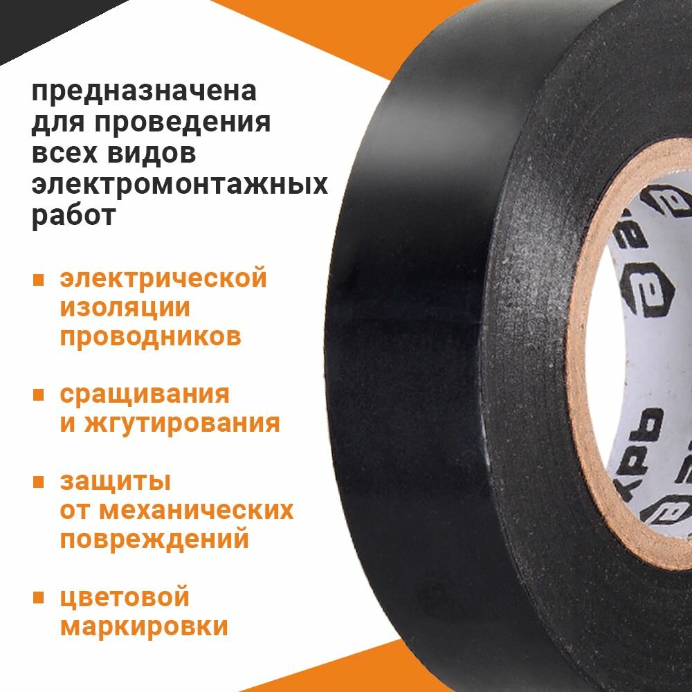 Изолента профессиональная из поливинилхлоридного изоляционного пластика (20m * 19mm) чёрная Вихрь