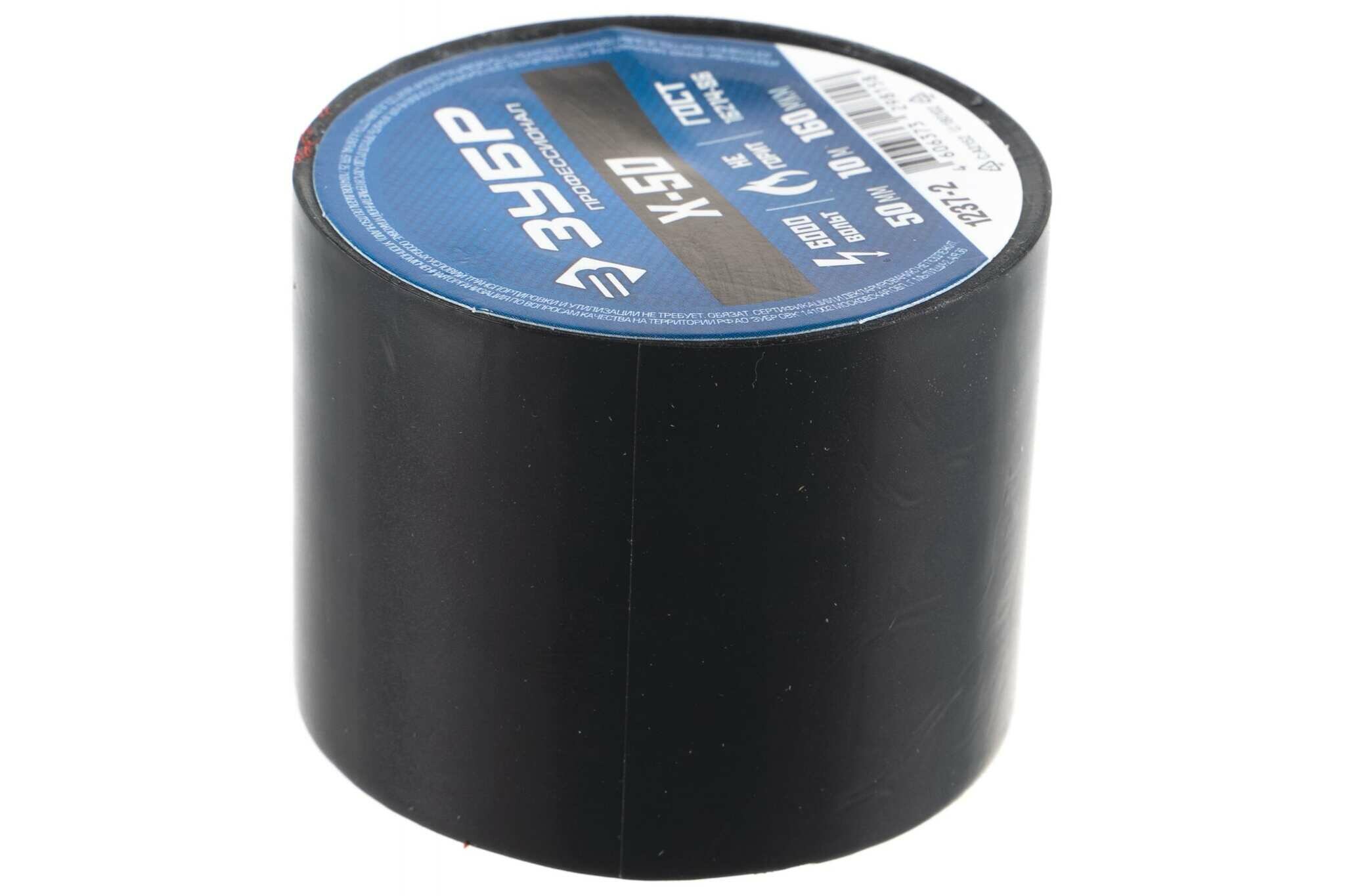 ЗУБР Х-50, 50 мм х 10 м, 6 000 В, черная, изолента ПВХ, Профессионал (1237-2)