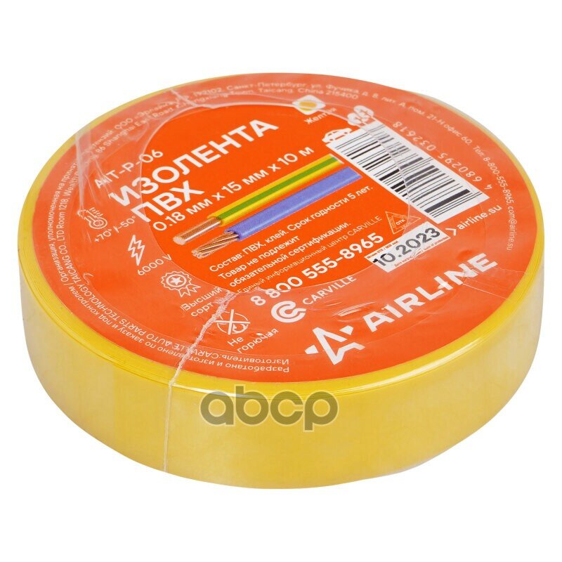 Автохимия AIRLINE Изолента ПВХ, желтая, 15 мм*10 м AIRLINE AITP06