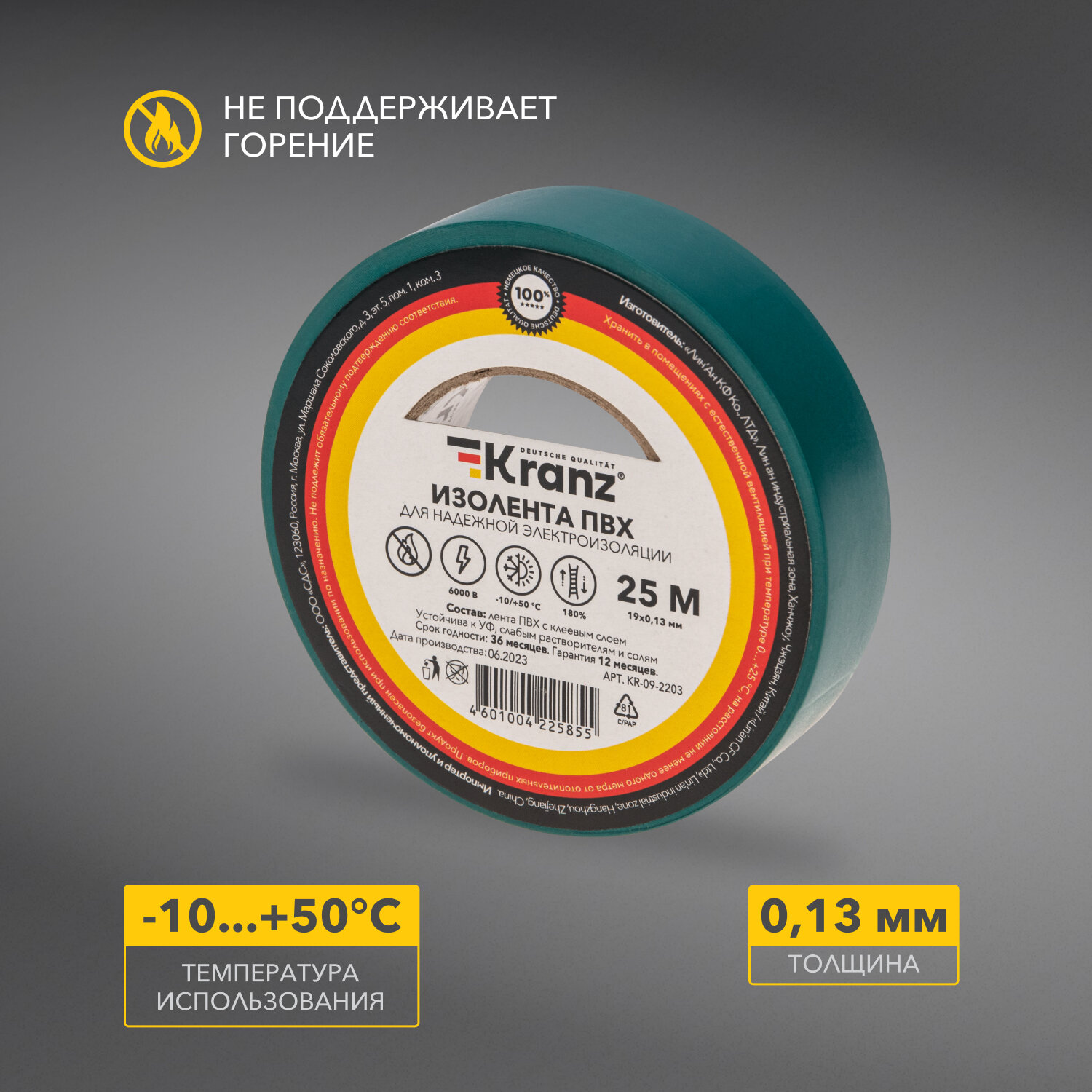 Изолента ПВХ 0.13х19мм 25м зел. | код. KR-09-2203 | Kranz ( 1шт. )