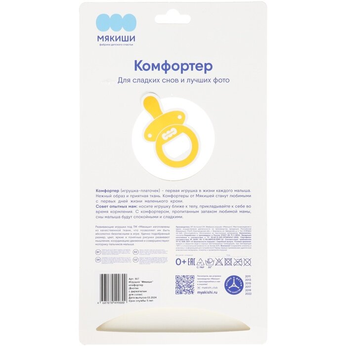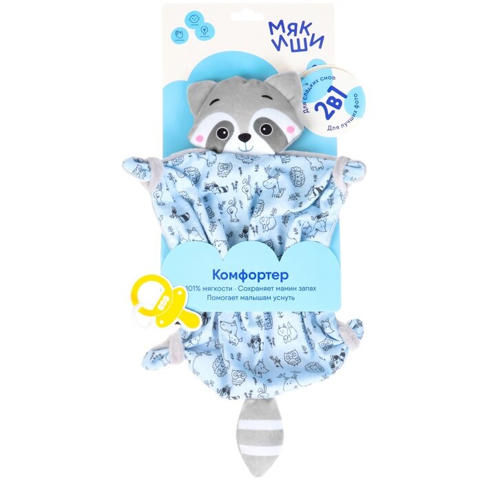 Игрушка - комфортер Мякиши Енотик с держателем для соски Мякиши 10526062 . интересное: