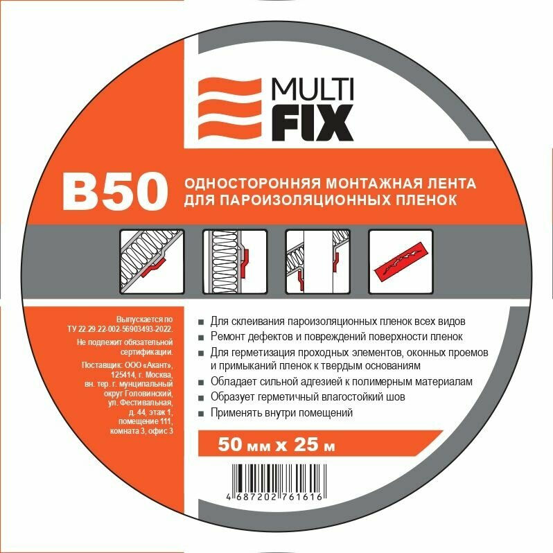 Монтажная лента "Multifix В50" для паро-ветро-влагоизоляционных пленок