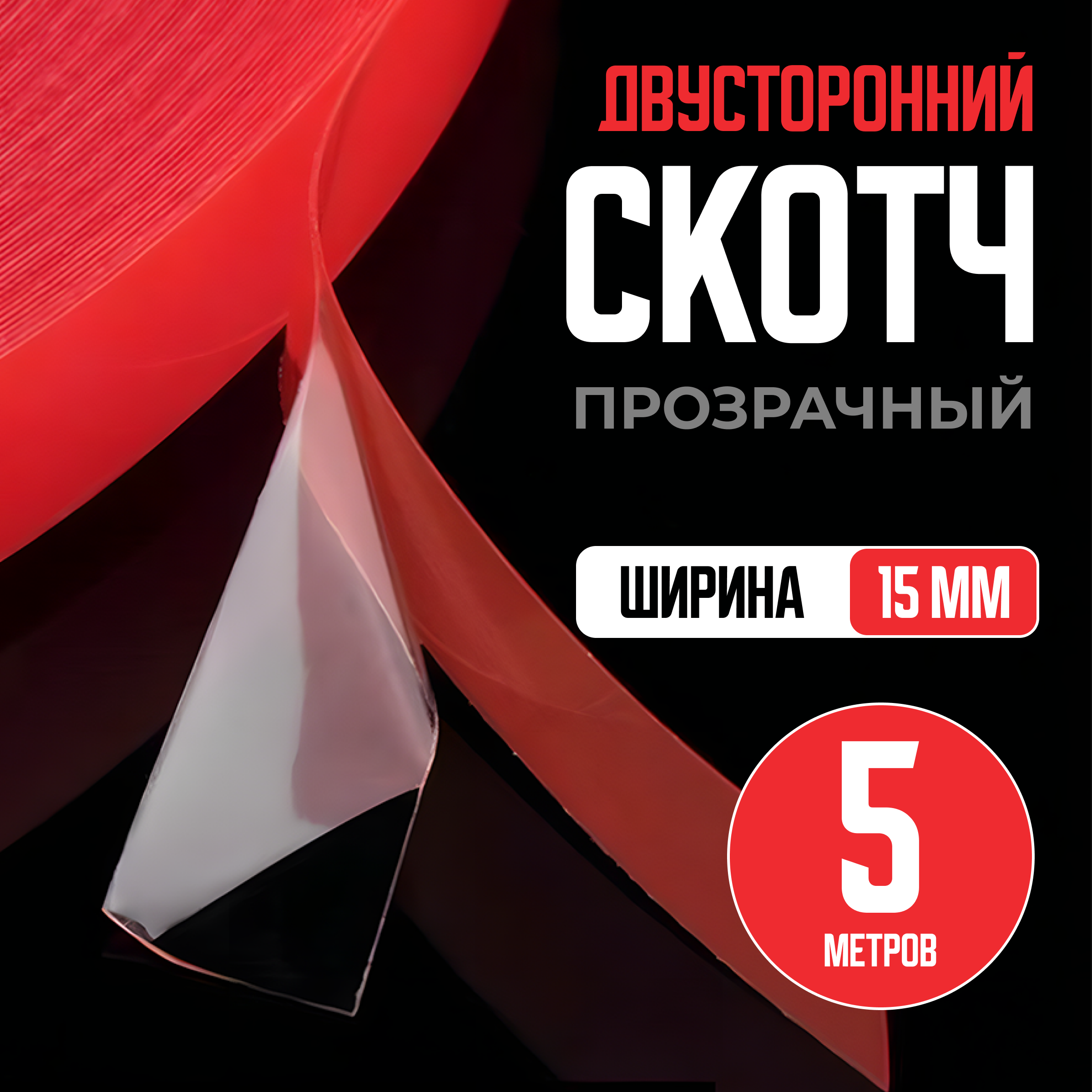 Двухсторонний скотч 3м 15мм х 5м, клейкая лента двухсторонняя, прозрачный