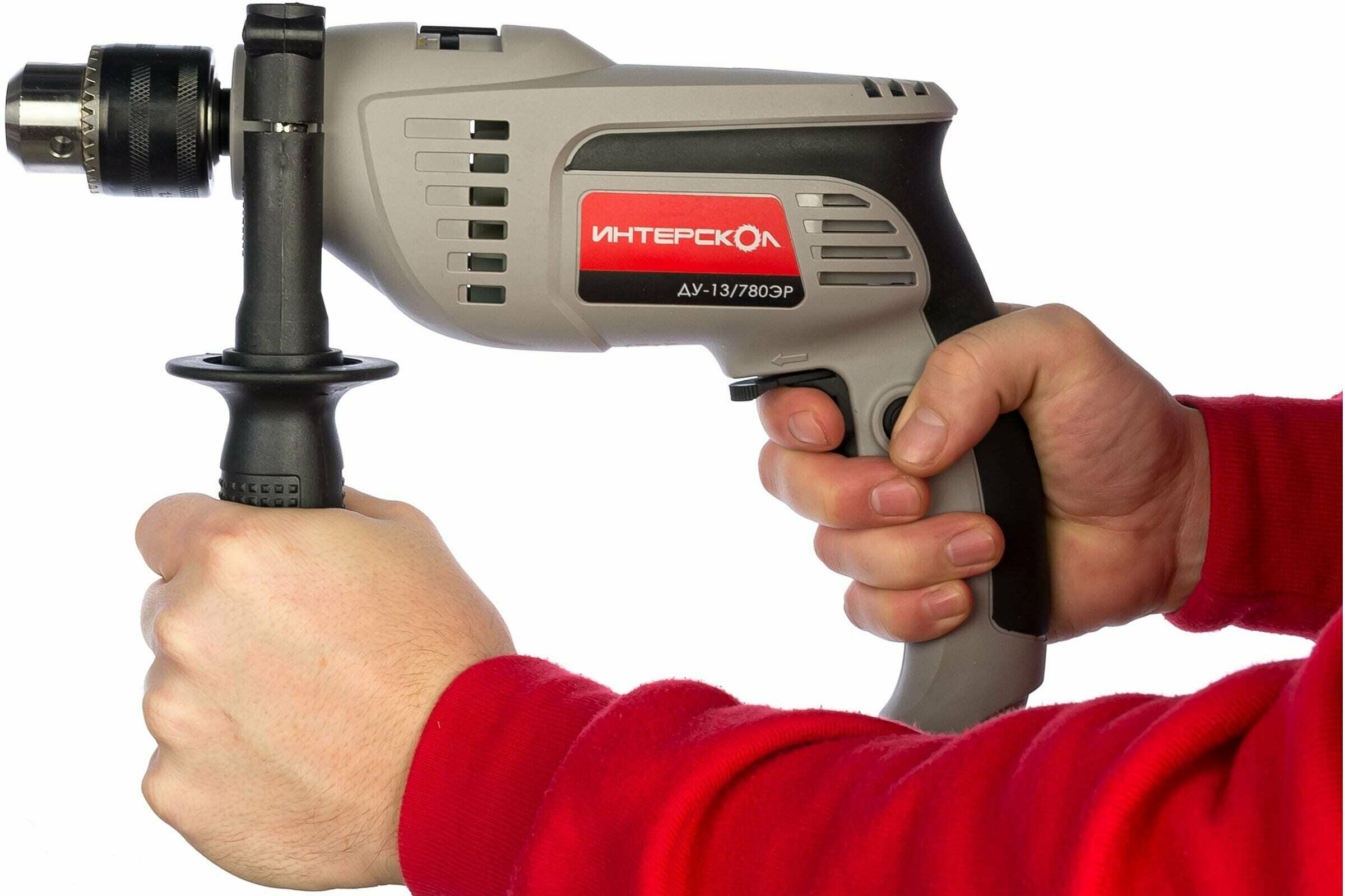 Дрель ударная ИНТЕРСКОЛ ДУ-13/780ЭР, 780 Вт, 30000 уд/мин, 2700 об/мин, реверс, ключевой патрон