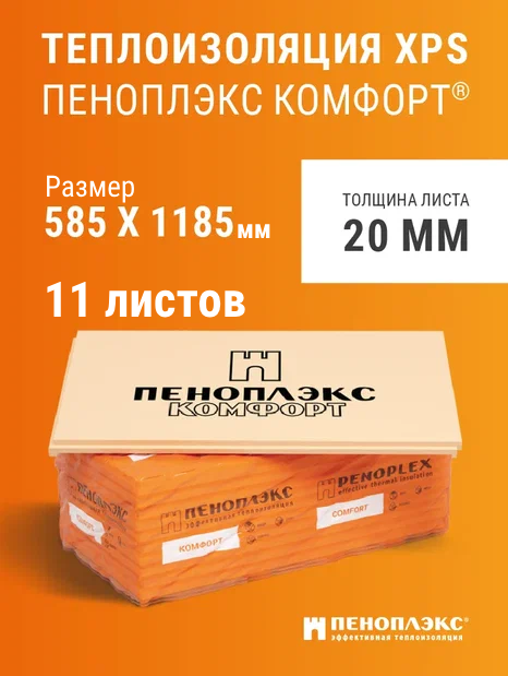 Пеноплэкс Комфорт XPS Г4 1185х585х20мм (шт.) / Пеноплэкс Комфорт экструдированный пенополистирол Г4 1185х585х20мм (шт.)
