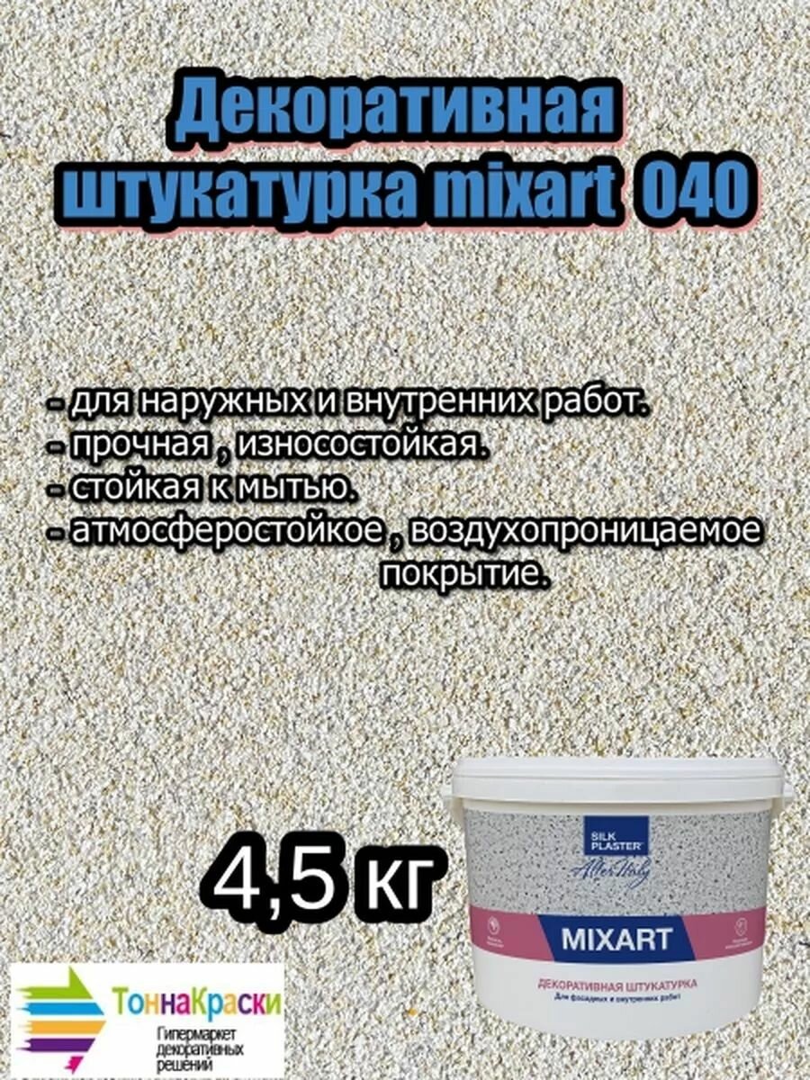 Мраморная Штукатурка Silk Plaster Mixart 040 4.5кг для Внутренних Работ Мелкая Фракция 0,2-0,5 мм / Силк Пластер Миксарт.