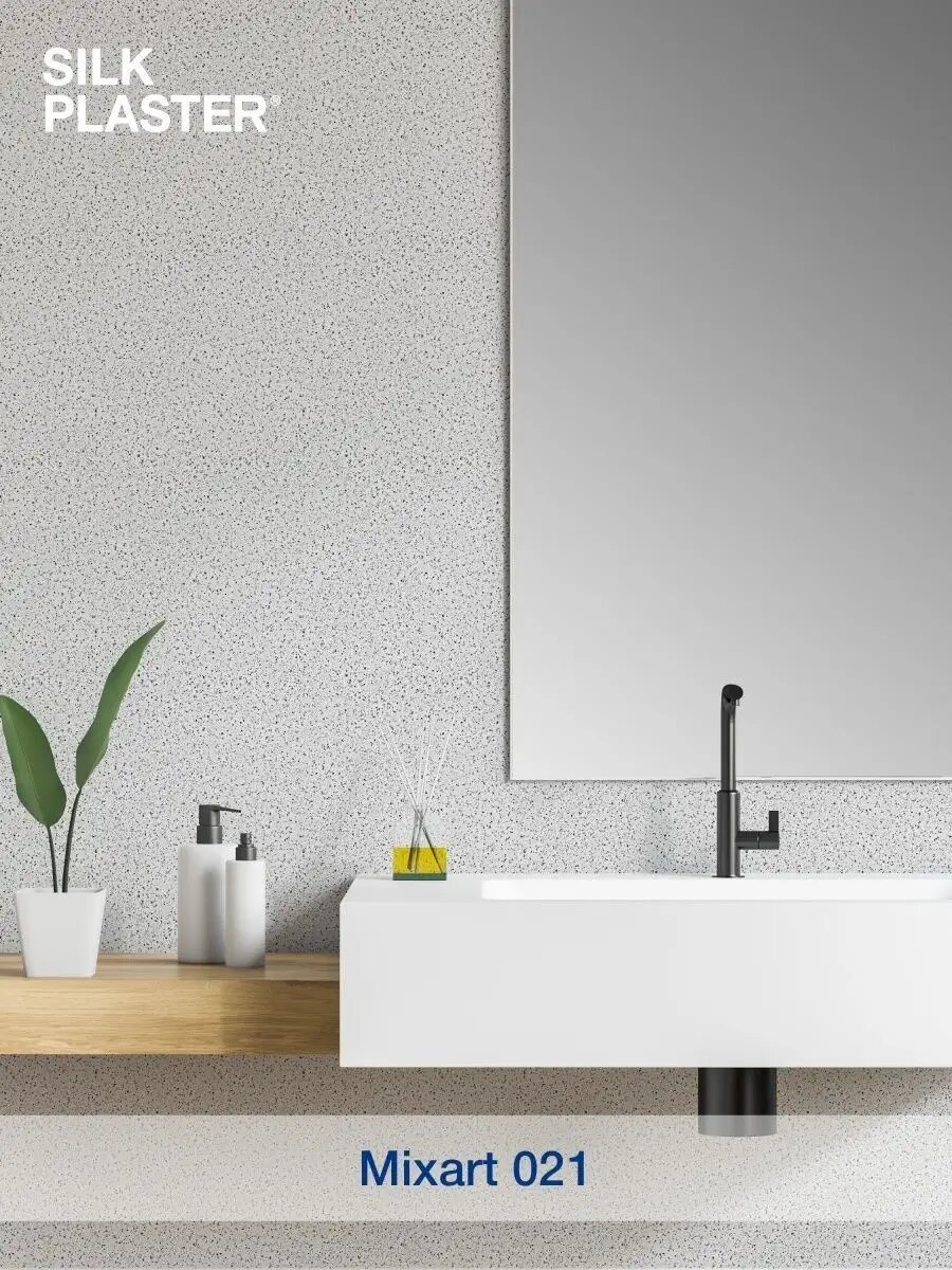Универсальная влагостойкая штукатурка Silk Plaster Миксарт (Mixart 021), бело - серый