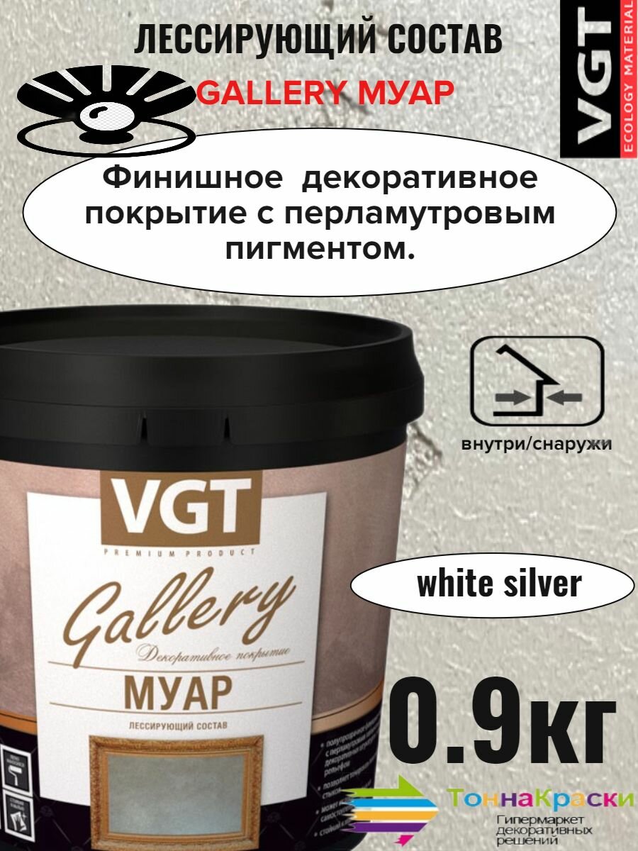 Лессирующий Состав Муар VGT Gallery 0.9кг White Silver с Перламутром, Полупрозрачный / ВГТ Муар.