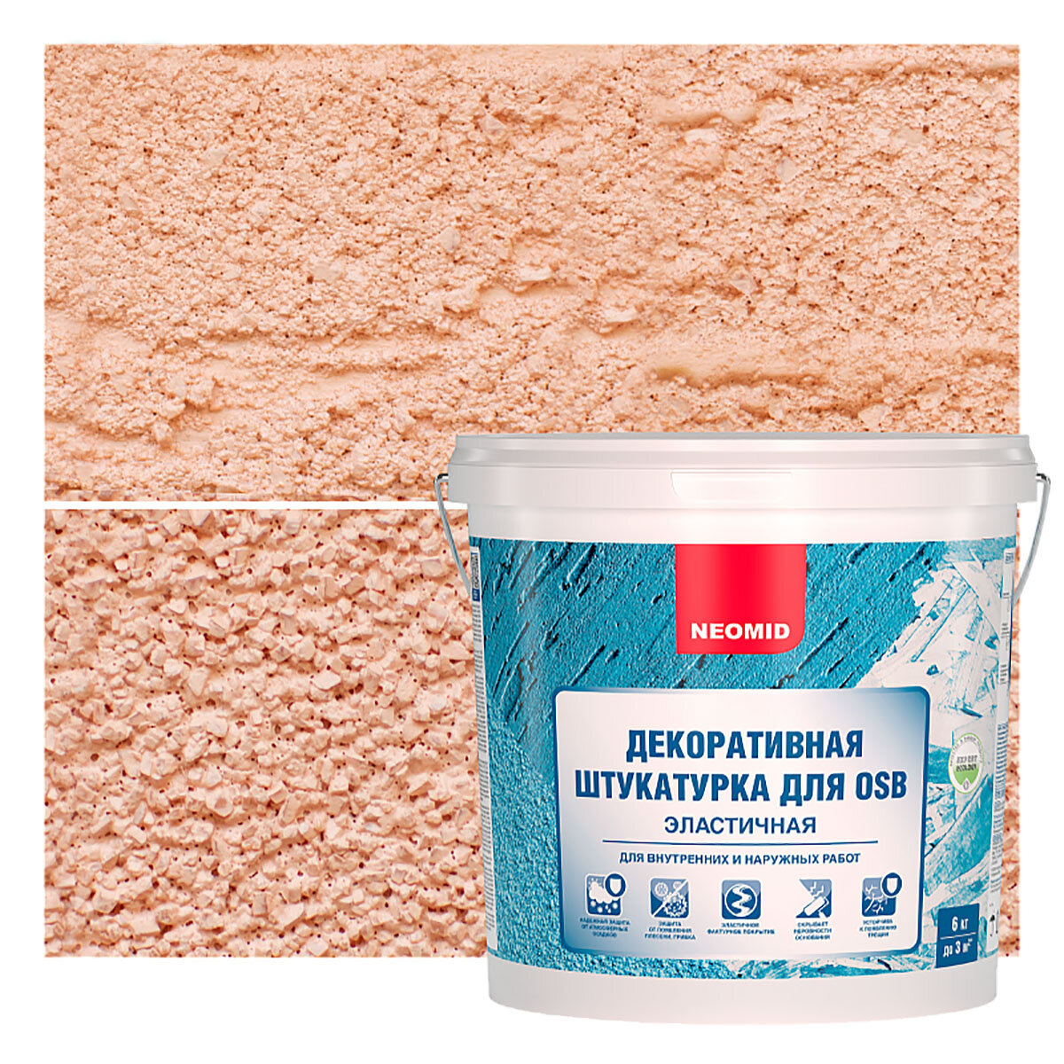 Декоративная Штукатурка для OSB Шуба Neomid 6кг Розовый Эластичная для Внутренних и Наружных Работ / Неомид Фактурная.