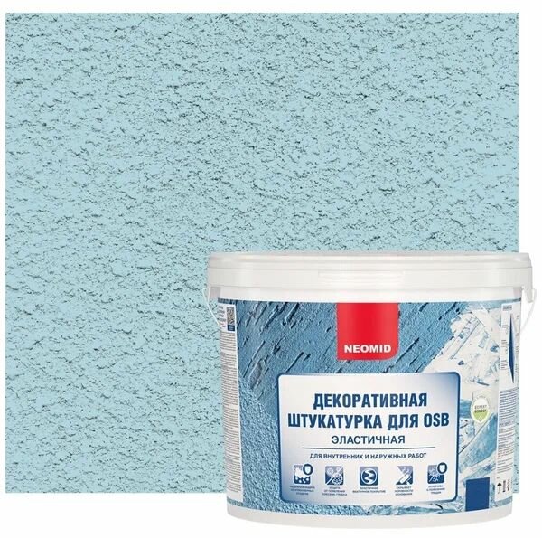 Купить Декоративная Штукатурка для OSB Шуба Neomid 16кг Голубая Эластичная для Внутренних и Наружных Работ / Неомид Фактурная.