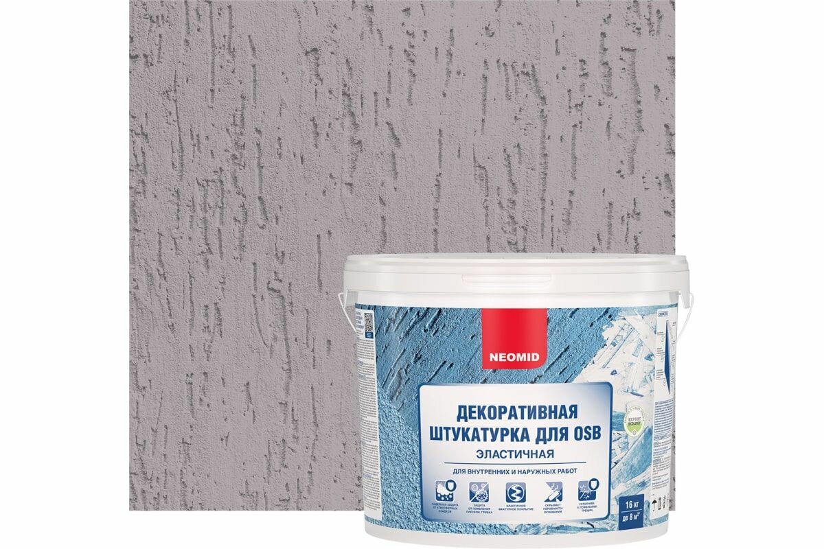 СохранитьДекоративная Штукатурка для OSB Шуба Neomid 6кг Серо-Лиловый Эластичная для Внутренних и Наружных Работ / Неомид Фактурная. интересное: