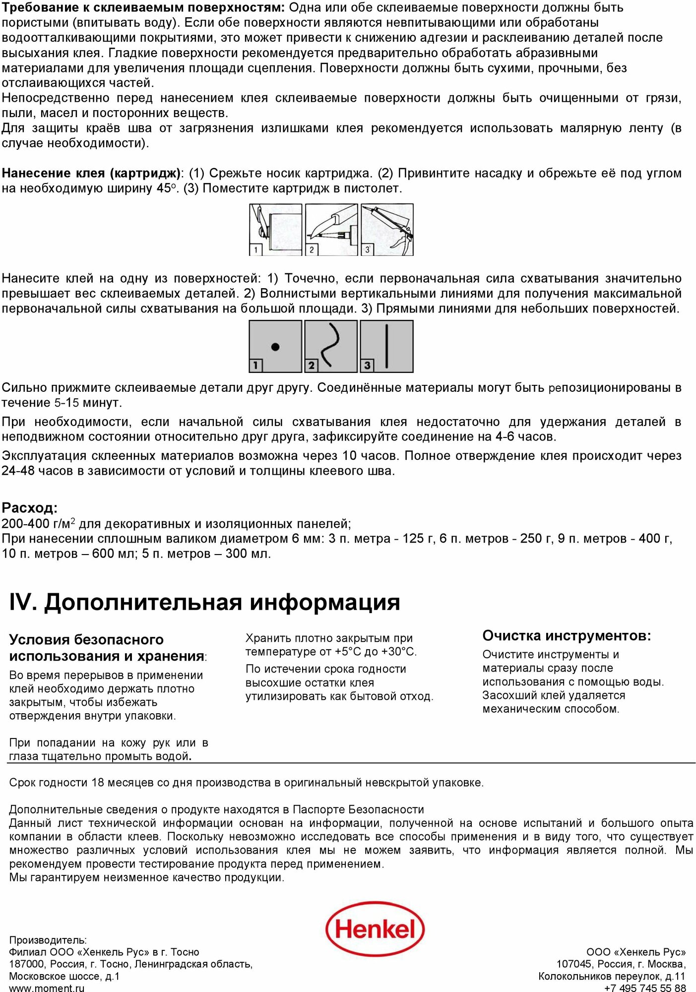 | Дополнительная информация | расход: 200-400 г/кв.м² для декоративных и изоляционных панелей; при нанесении сплошным валиком диаметром 6 мм: 3 п. метра - 125 г, 6 п. метров - 250 г, 9 п. метров - 400 г |