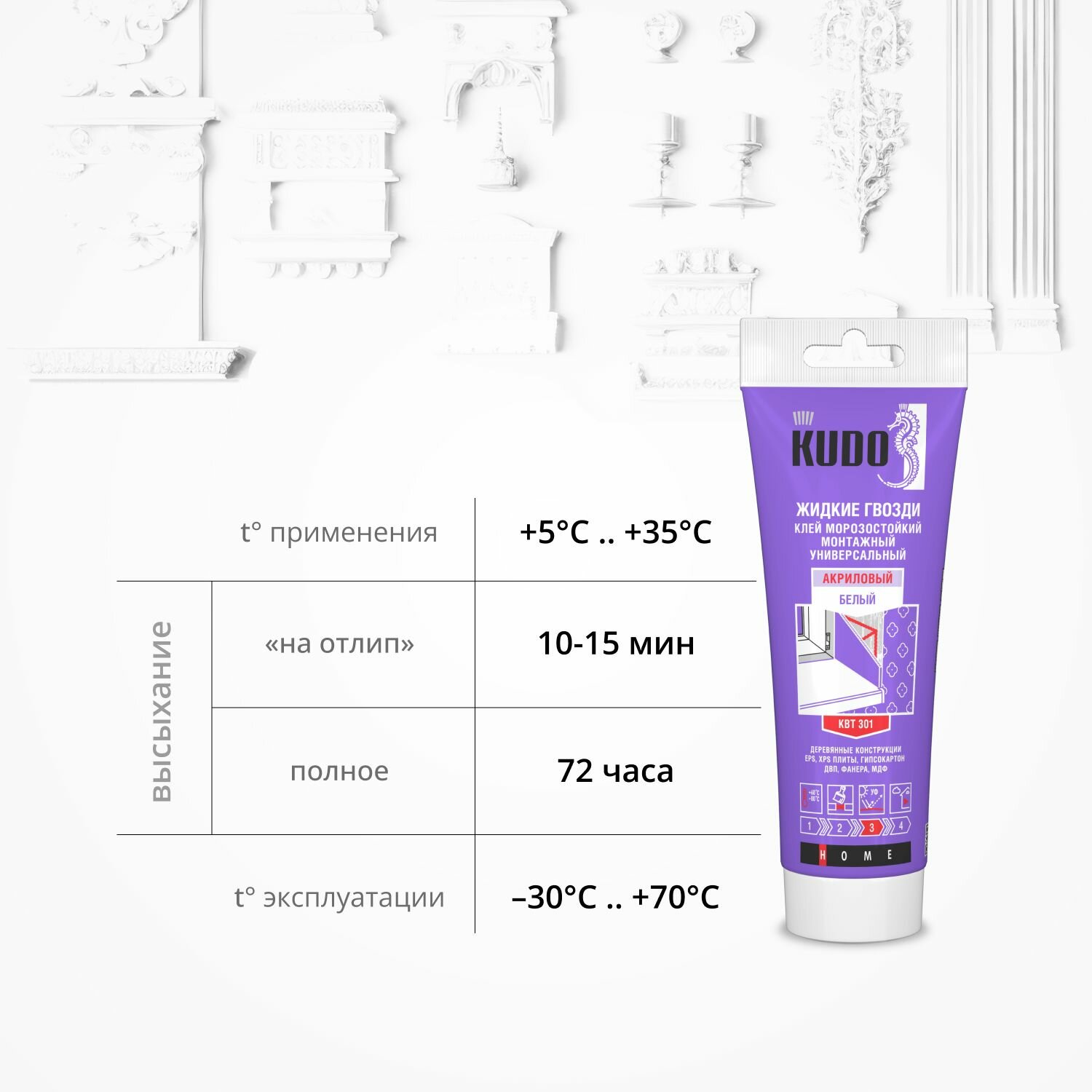 СохранитьКлей монтажный акриловый морозостойкий KUDO "жидкие гвозди", белый, KBT-301 интересное:
