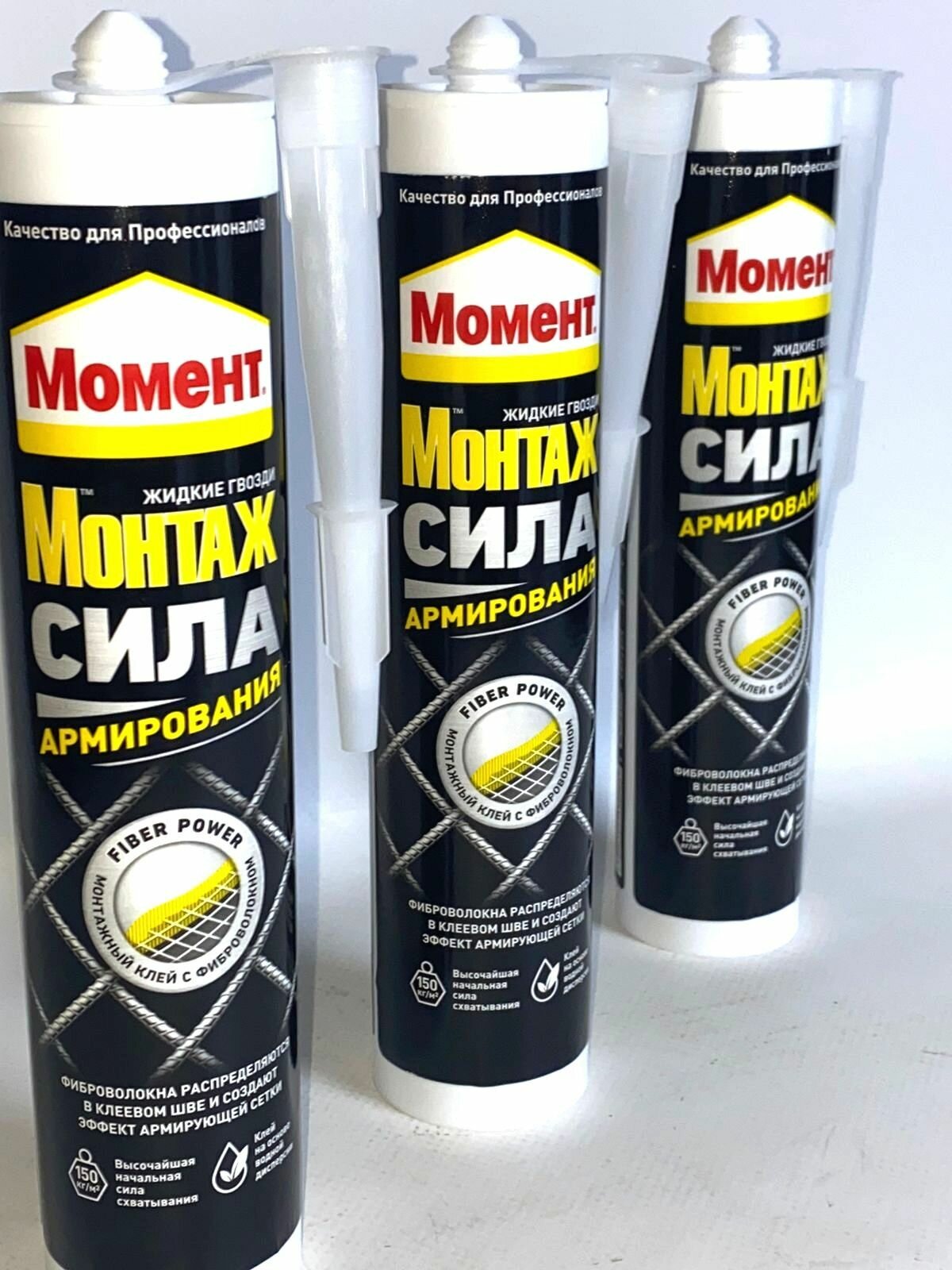 Клей монтажный Момент Монтаж Сила Армирования, жидкие гвозди 400 г, белый, 1шт
