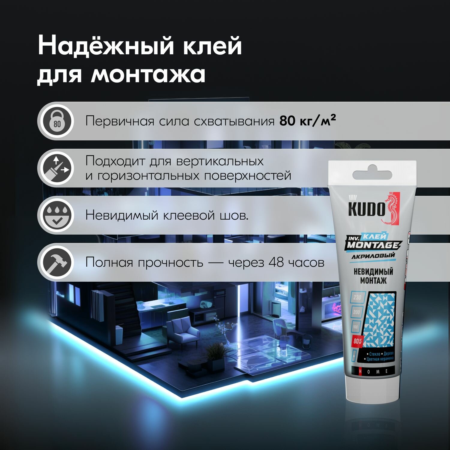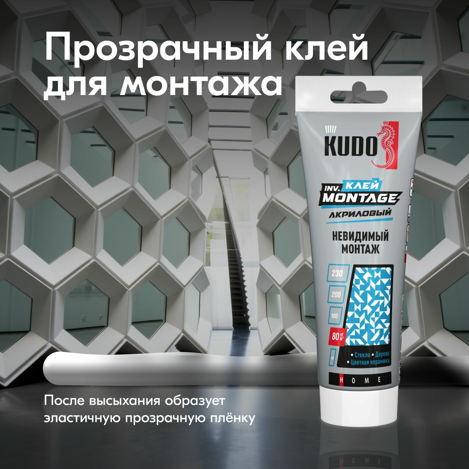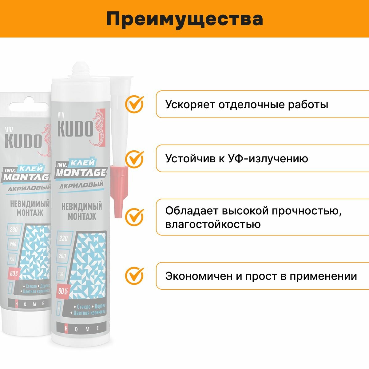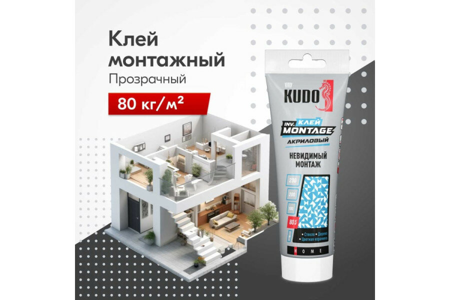 Клей монтажный Kudo Home inv. Montage, акриловый, 200 мл, прозрачный