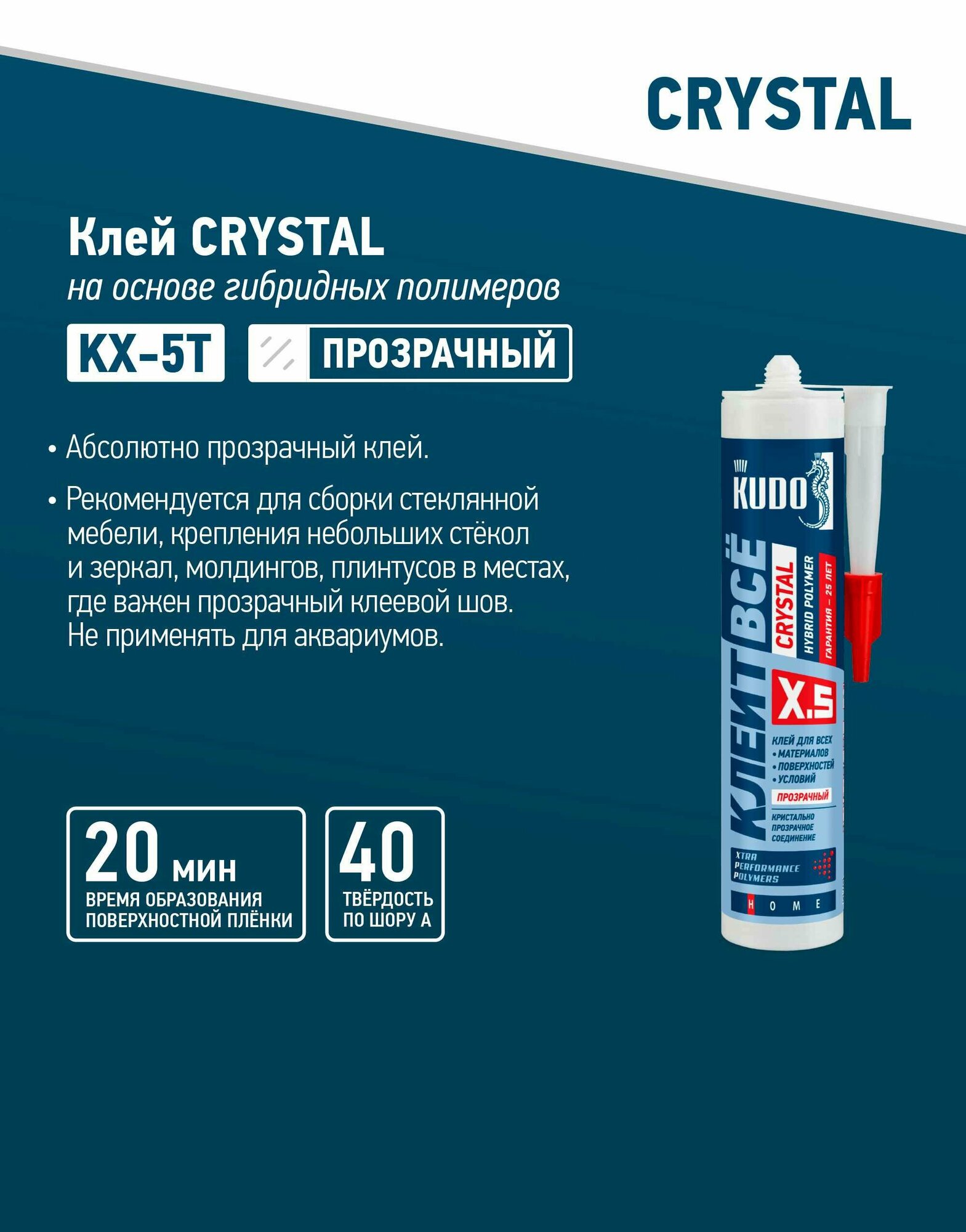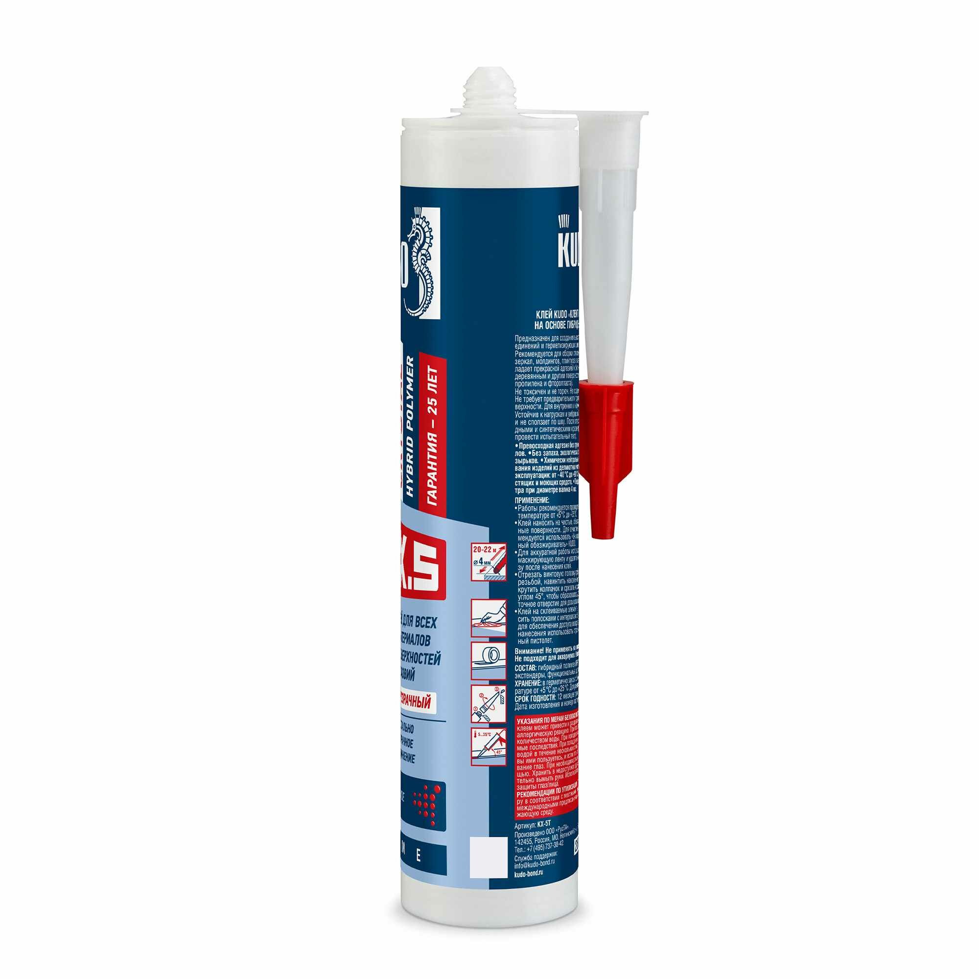 Клей-герметик Kudo Crystal KX-5T «Клеит все», гибридный, 280 мл, прозрачный