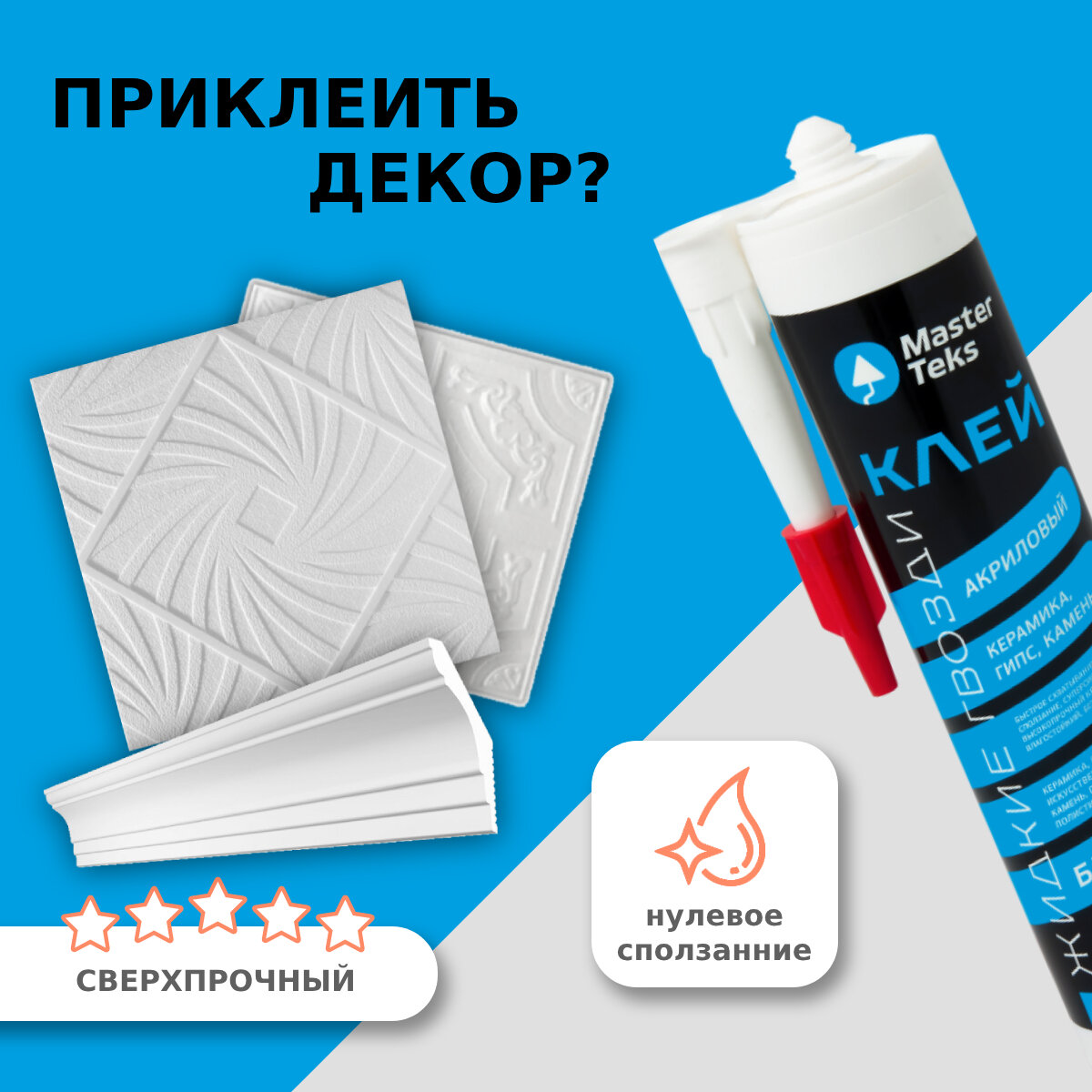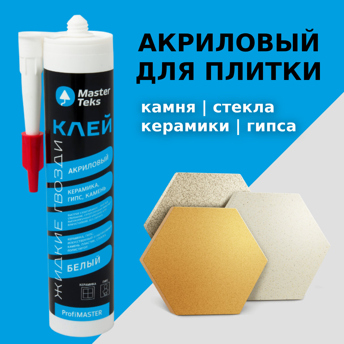 Жидкие гвозди masterteks жг акриловый керамика, гипс, камень 528гр белый, арт.9753000