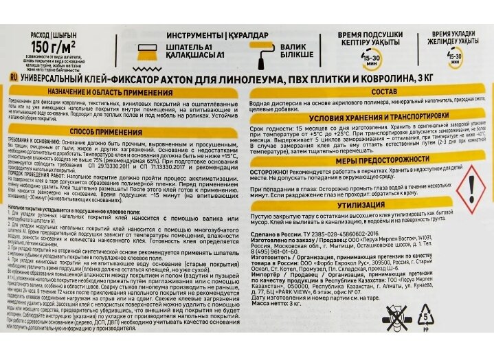 Клей-фиксатор Axton для ковролина и линолеума, 3 кг интересное: