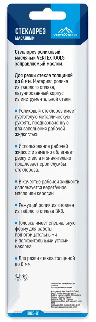 Стеклорез масляный VERTEXTOOLS с металлической ручкой интересное: