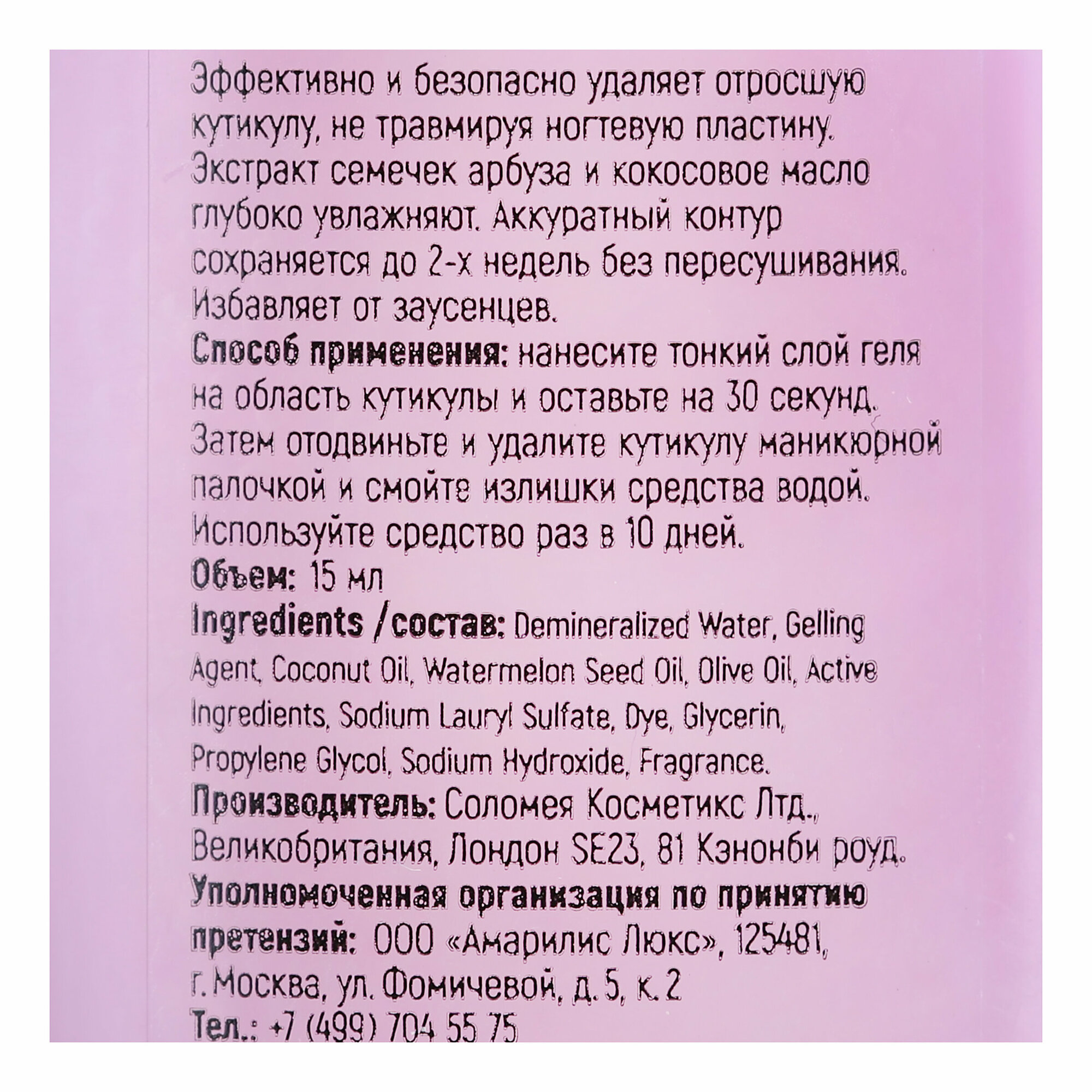 Solomeya, Гель для удаления кутикулы, 10 мл