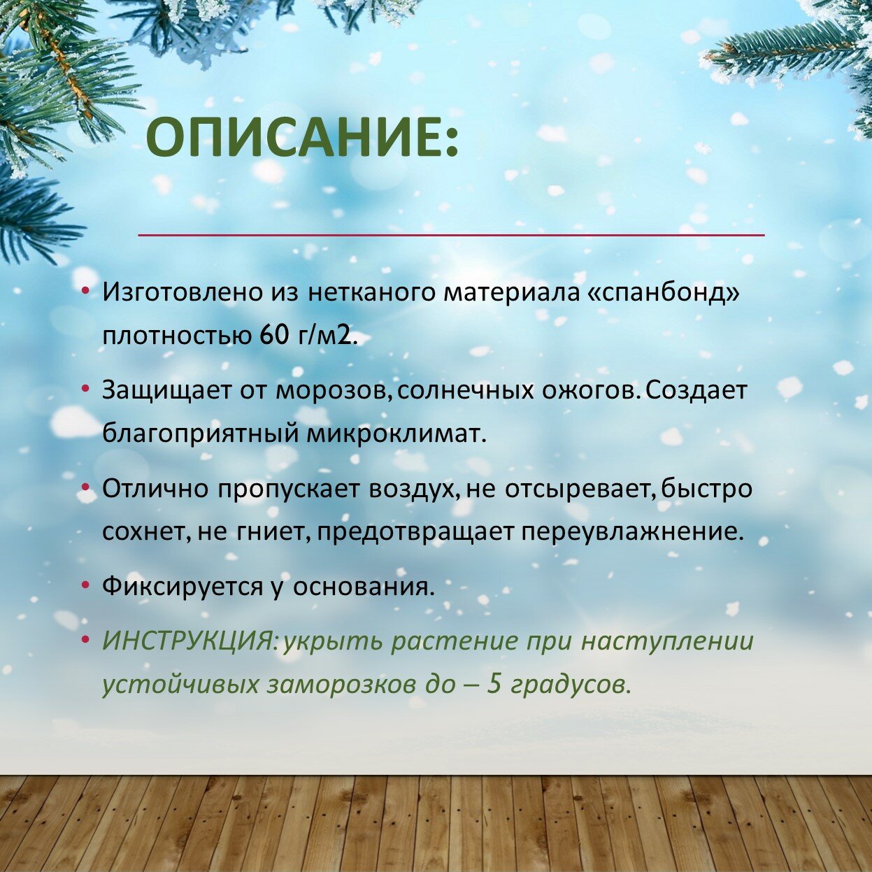 | Назначение | для защиты от морозов, для теплиц, для укрытия растений |